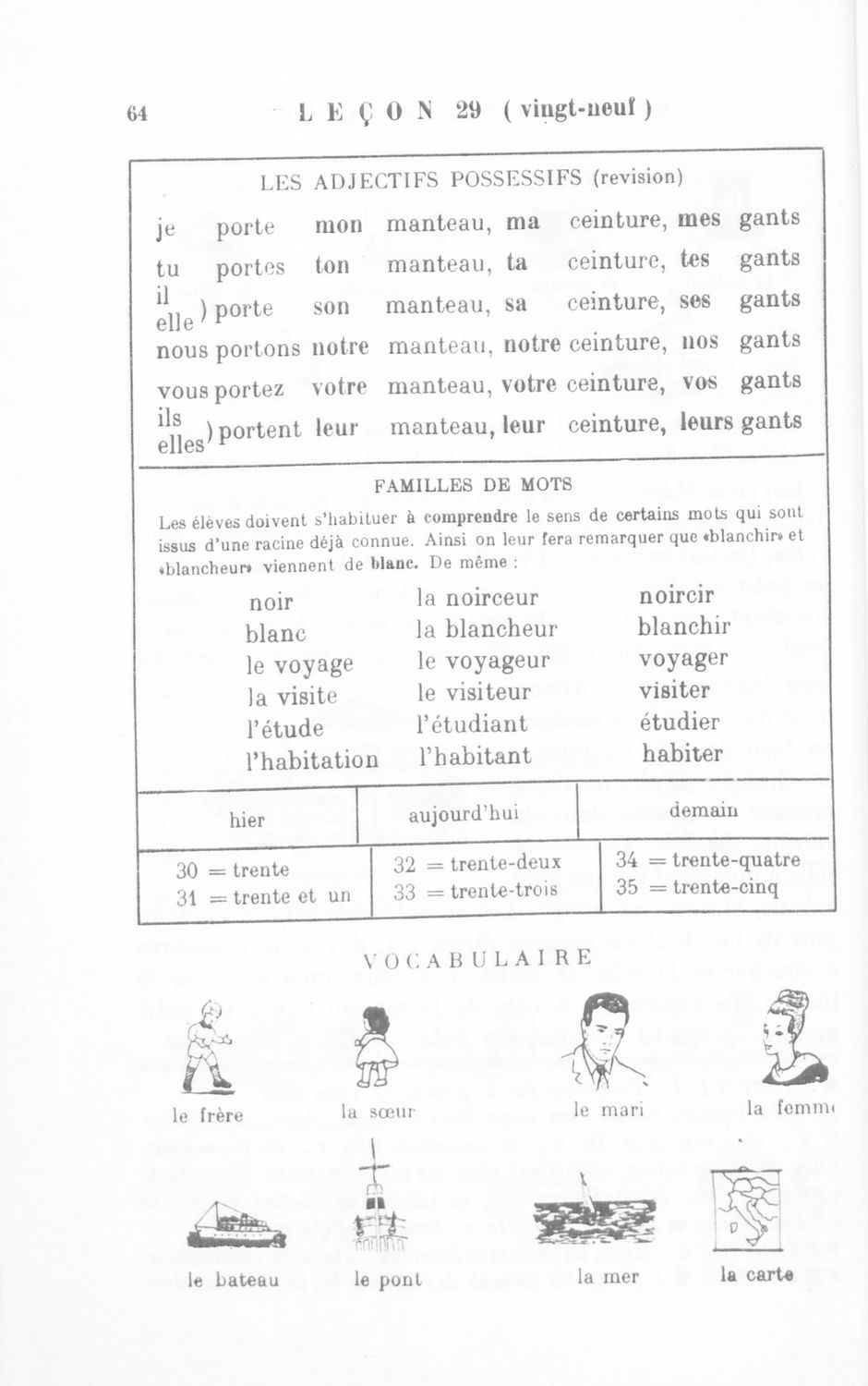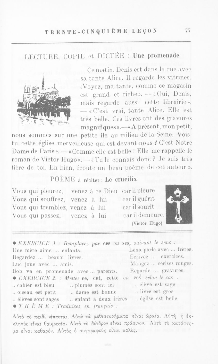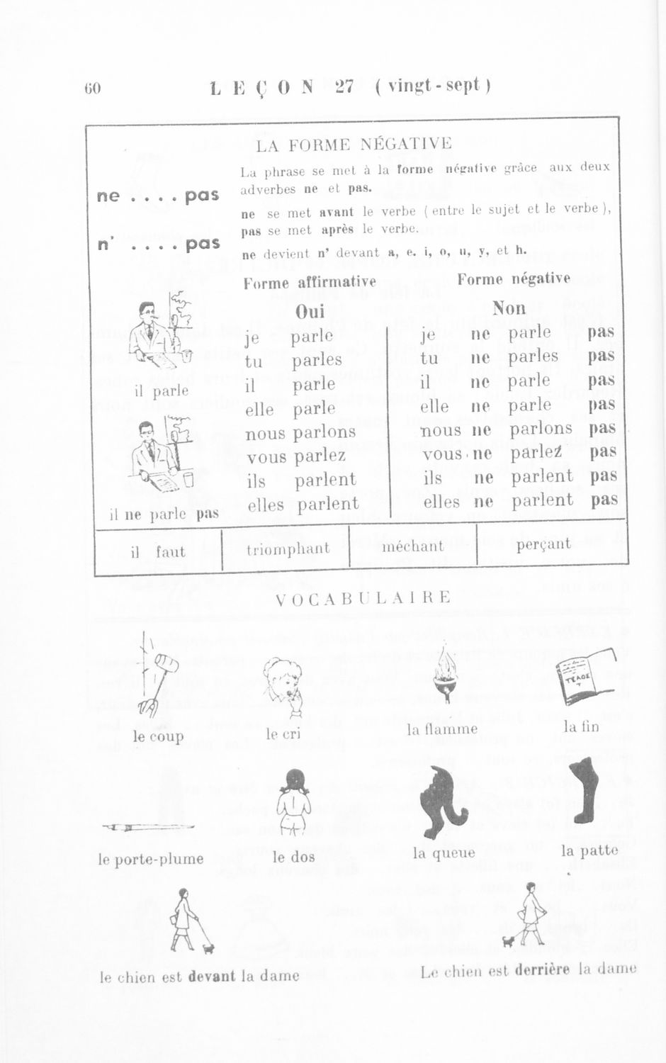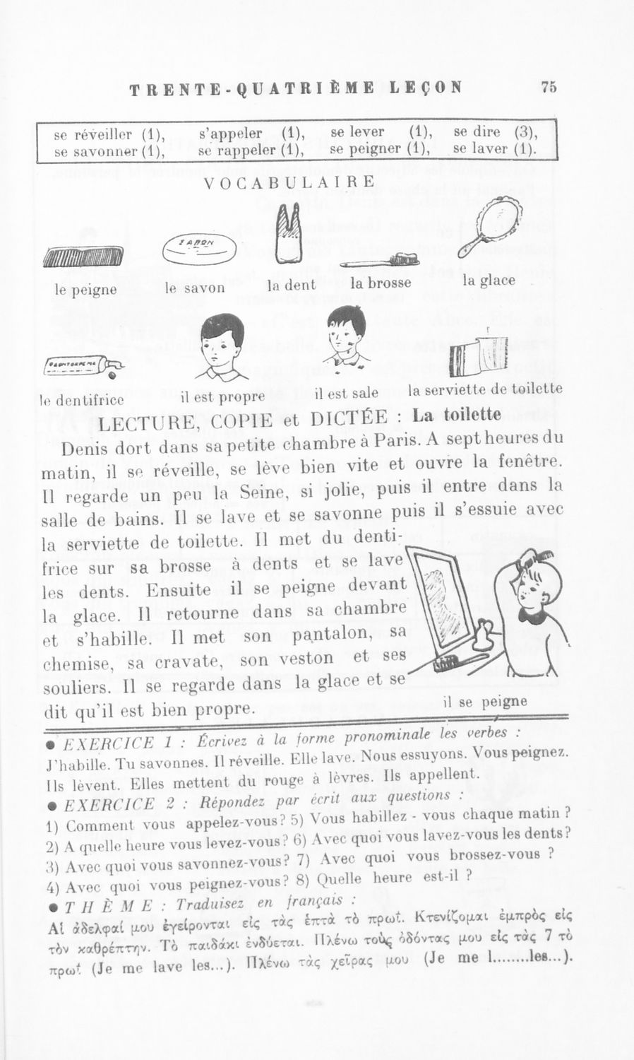Πρόκειται για το Α΄ μέρος σχολικού εγχειριδίου το οποίο μέσα από μικρά αυτοτελή μαθήματα προοριζόταν για τη διδασκαλία του μαθήματος της Γαλλικής γλώσσας. Φέρει λίγες προσωπικές σημειώσεις του μαθητή.