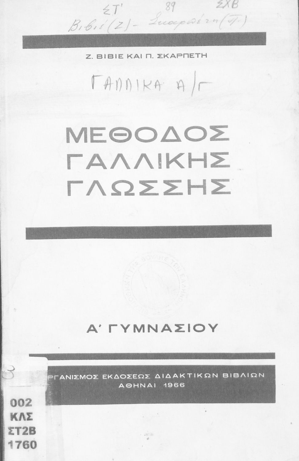 Τίτλος: Μέθοδος Γαλλικής Γλώσσης. Α΄ Γυμνασίου