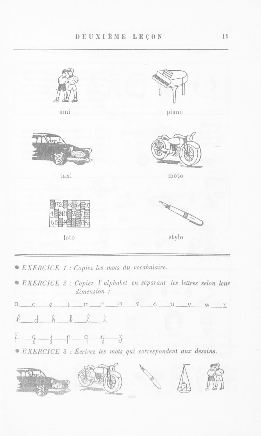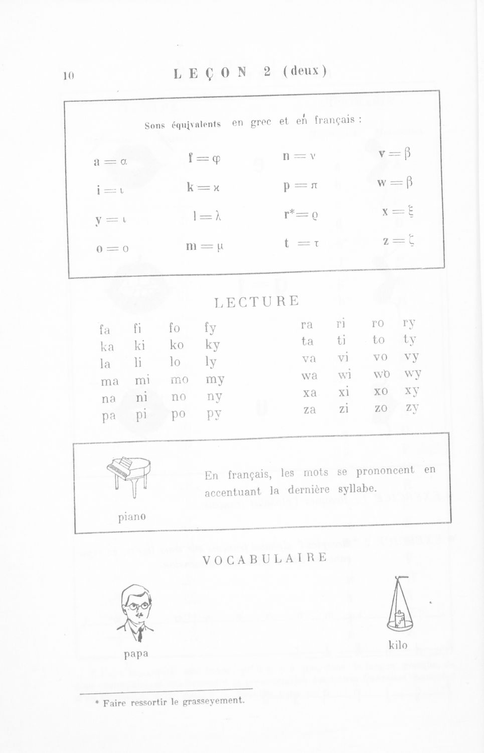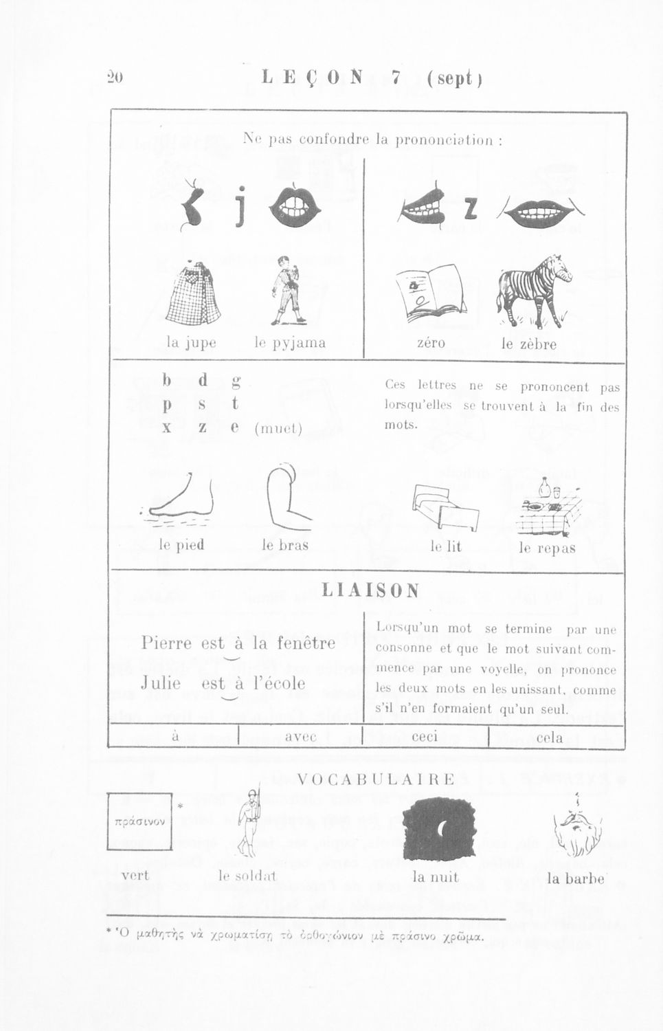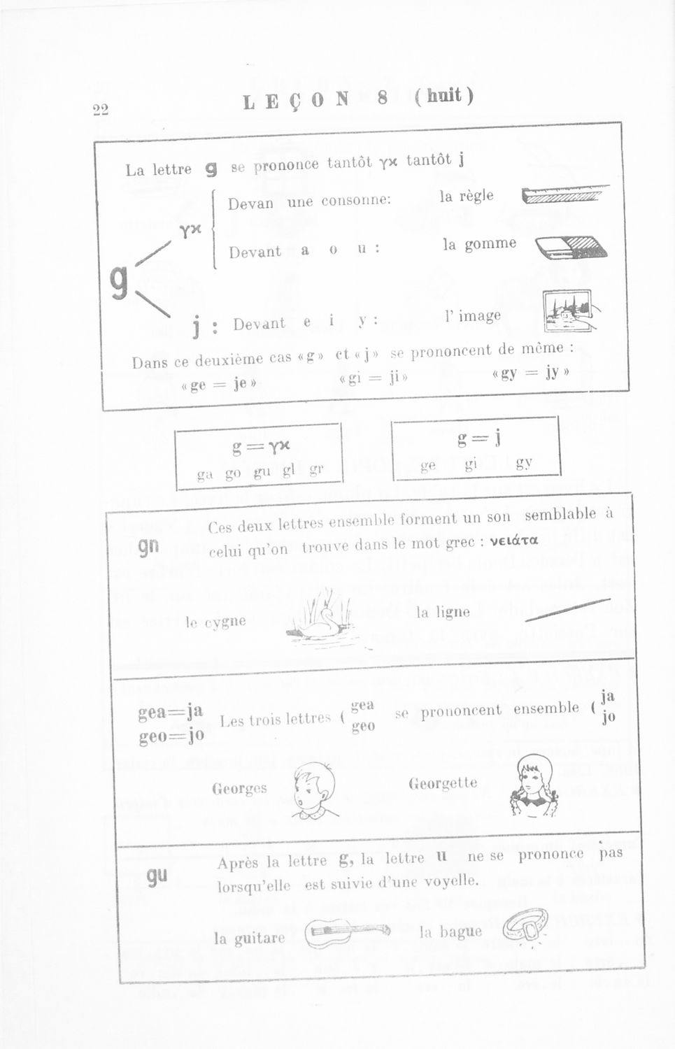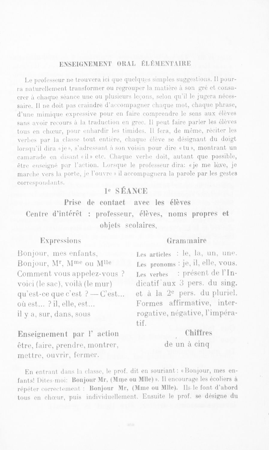 Πρόκειται για το Α΄ μέρος σχολικού εγχειριδίου το οποίο μέσα από μικρά αυτοτελή μαθήματα προοριζόταν για τη διδασκαλία του μαθήματος της Γαλλικής γλώσσας. Φέρει λίγες προσωπικές σημειώσεις του μαθητή.