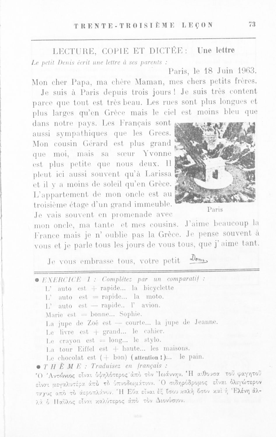 Σχολικό εγχειρίδιο της Α΄ Γυμνασίου για το μάθημα της Γαλλικής Γλώσσας. Περιέχει κείμενα και γραμματικά και συντακτικά φαινόμενα για την εκμάθηση της γαλλικής γλώσσας. Στο τέλος διαθέτει γαλλικό-ελληνικό λεξικό.