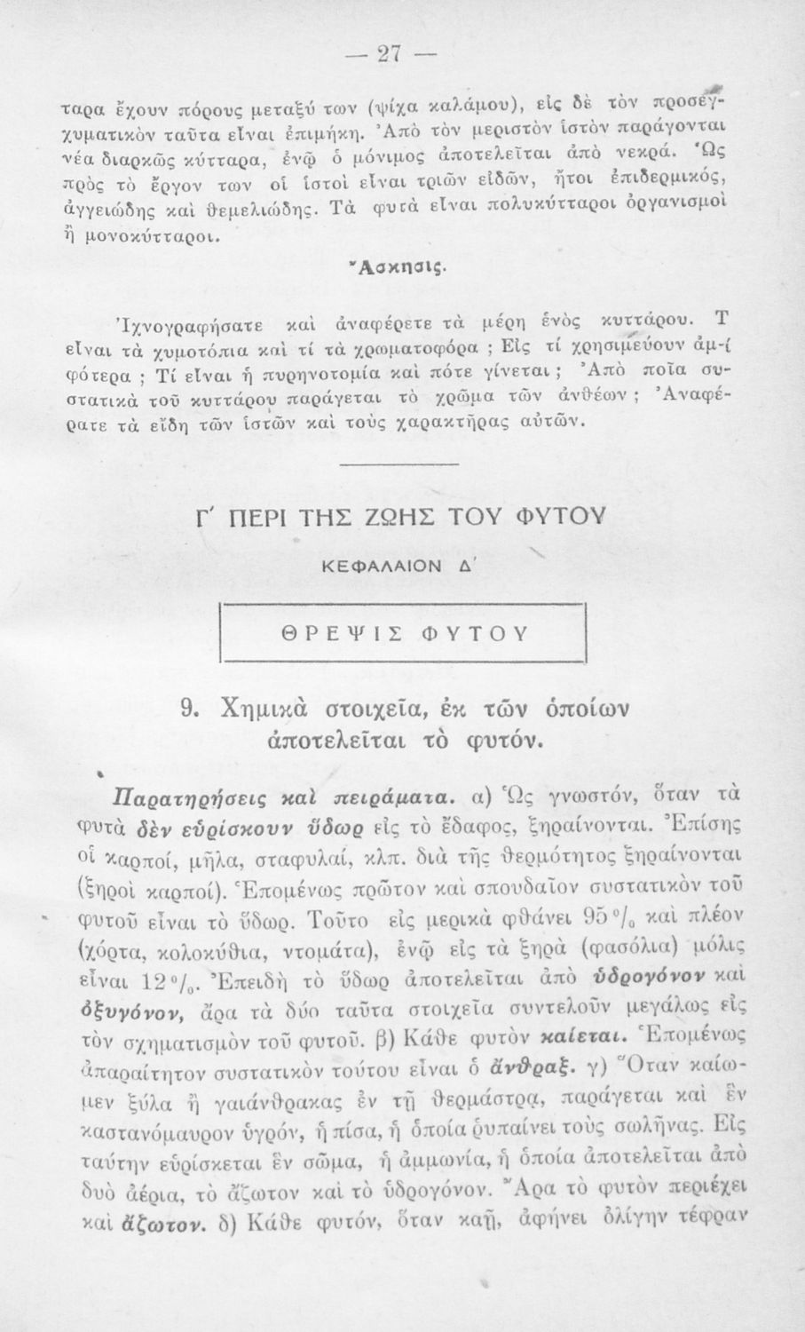 Παρουσίαση περιεχομένου: Σχολικό εγχειρίδιο για τη Β΄ Γυμνασίου των Εξατάξιων Εμπορικών Σχολών για το μάθημα της Φυσικής Ιστορίας. Αναφέρει τα χαρακτηριστικά γνωρίσματα και τις ιδιότητες των φυτών και μετά αναφέρει στοιχεία γεωλογίας, τις ιδιότητες του εδάφους, της επιφάνειας της γης κ.α.