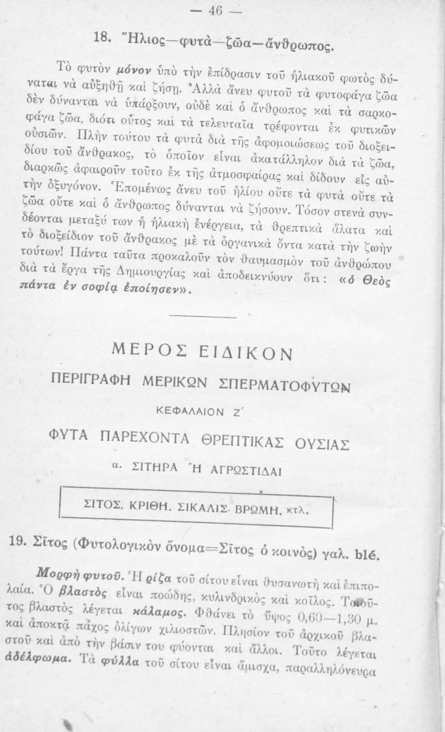 Παρουσίαση περιεχομένου: Σχολικό εγχειρίδιο για τη Β΄ Γυμνασίου των Εξατάξιων Εμπορικών Σχολών για το μάθημα της Φυσικής Ιστορίας. Αναφέρει τα χαρακτηριστικά γνωρίσματα και τις ιδιότητες των φυτών και μετά αναφέρει στοιχεία γεωλογίας, τις ιδιότητες του εδάφους, της επιφάνειας της γης κ.α.