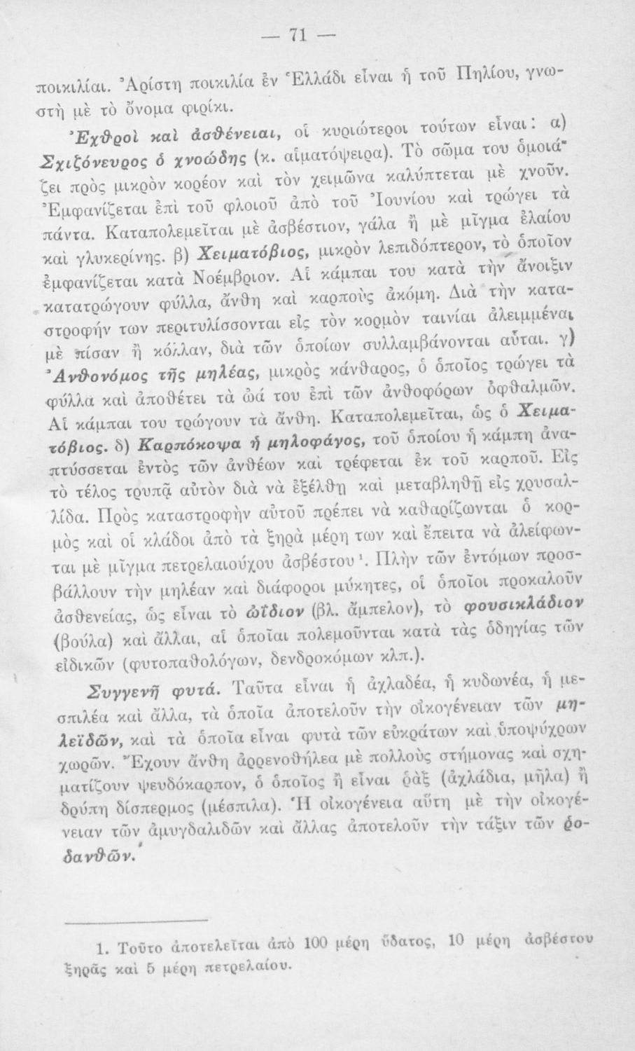 520 ## _aΣχολικό εγχειρίδιο για τη Β΄ Γυμνασίου των Εξατάξιων Εμπορικών Σχολών για το μάθημα της Φυσικής Ιστορίας. Αναφέρει τα χαρακτηριστικά γνωρίσματα και τις ιδιότητες των φυτών και μετά αναφέρει στοιχεία γεωλογίας, τις ιδιότητες του εδάφους, της επιφάνειας της γης κ.α.