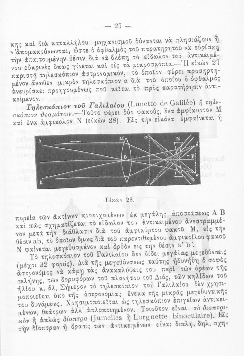 Σχολικό εγχειρίδιο των εμπορικών και πρακτικών σχολών για το μάθημα της Φυσικής. Το εγχειρίδιο περιλαμβάνει τις βασικές θεματικές και έννοιες της οπτικής, του μαγνητισμού και του ηλεκτρισμού, καθώς επίσης και την καθημερινή εφαρμογή τους σε καθημερινά αντικείμενα (ηλεκτρικές μηχανές, ασύρματος τηλέγραφος κ.α.).