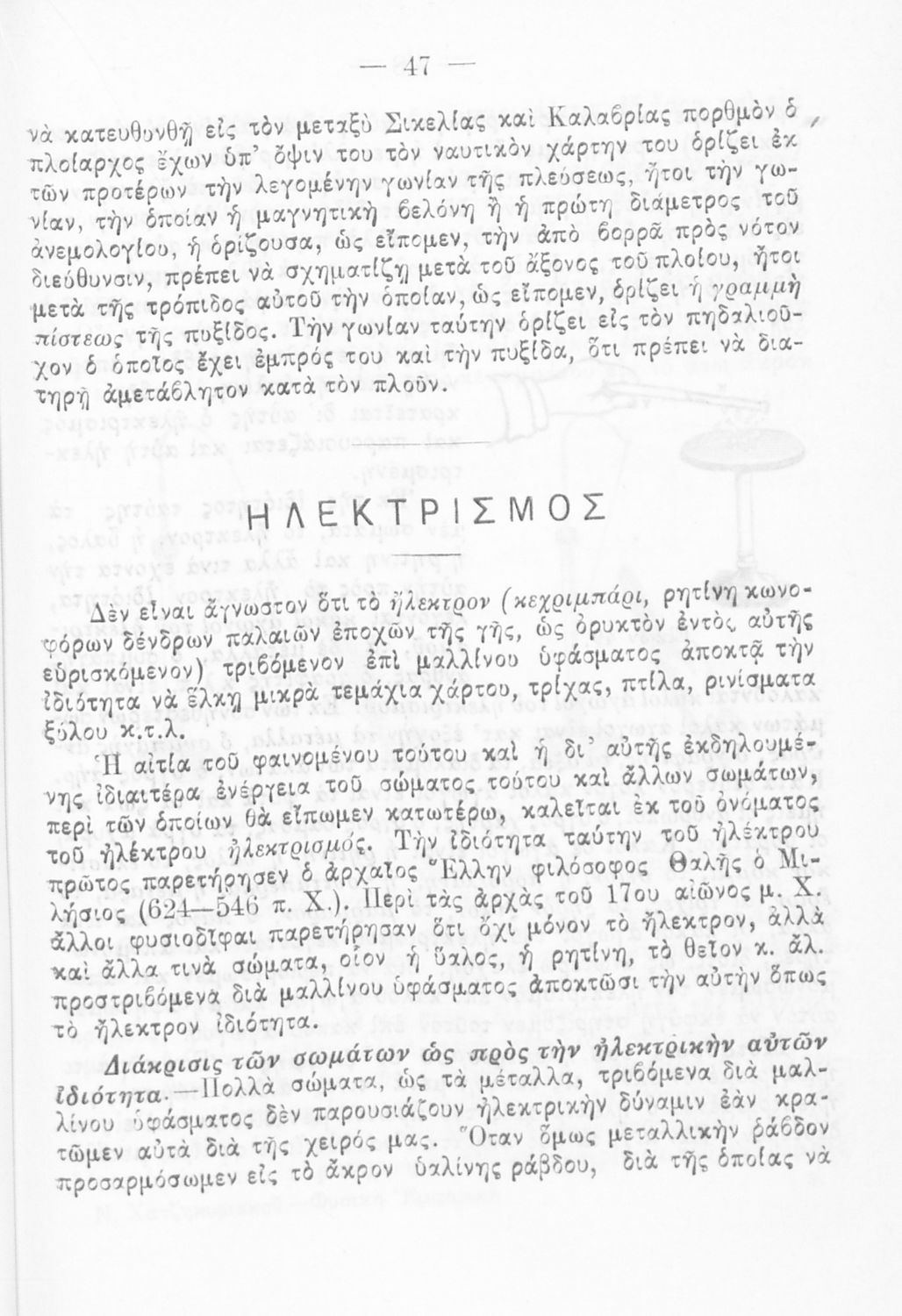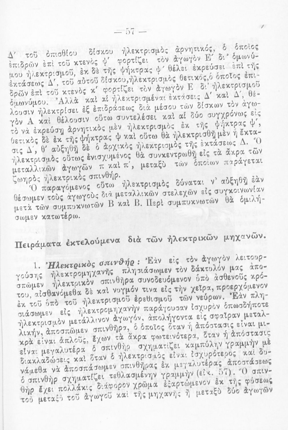 Σχολικό εγχειρίδιο των εμπορικών και πρακτικών σχολών για το μάθημα της Φυσικής. Το εγχειρίδιο περιλαμβάνει τις βασικές θεματικές και έννοιες της οπτικής, του μαγνητισμού και του ηλεκτρισμού, καθώς επίσης και την καθημερινή εφαρμογή τους σε καθημερινά αντικείμενα (ηλεκτρικές μηχανές, ασύρματος τηλέγραφος κ.α.).
