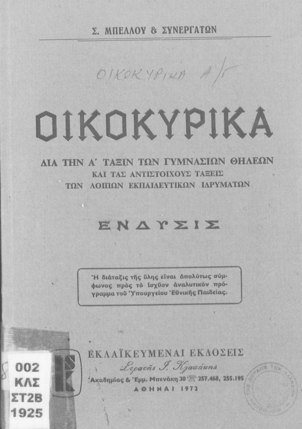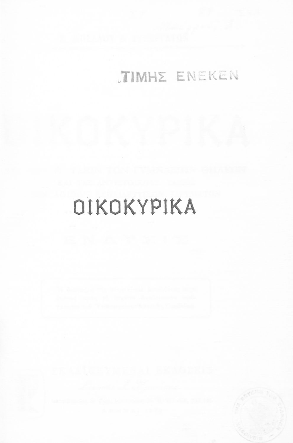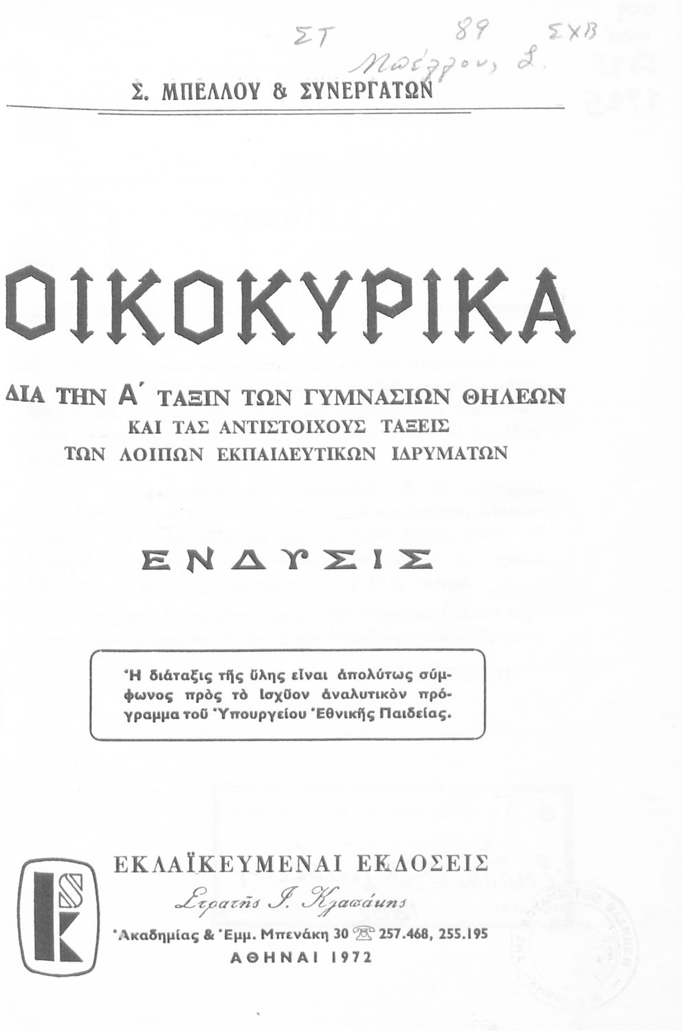Εκδότης: Στρατής Γ. Κλαπάκης Έτος έκδοσης: 1972 Τόπος έκδοσης: Αθήνα Έτος έγκρισης: 1972 |