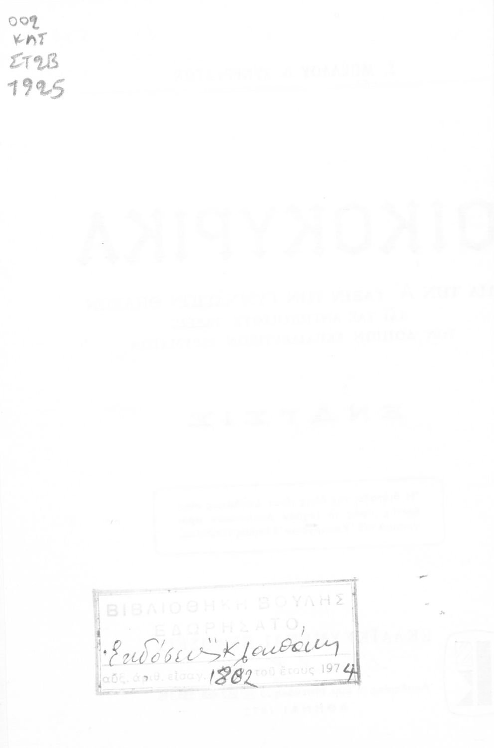 Εντοπισμός πρωτοτύπου: Βιβλιοθήκη της Βουλής των Ελλήνων Κωδικός βιβλιοθήκης: 20560365 |