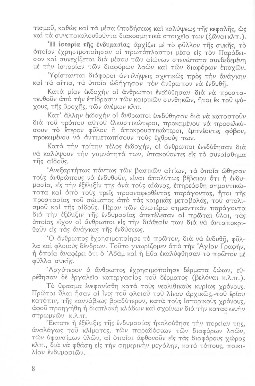 Σχολικό εγχειρίδιο Οικοκυρικών της Α' Γυμνασίου. Το βιβλίο αποτελεί μια εισαγωγή στην ένδυση. Στο πρώτο μέρος γίνεται αναφορά στον αισθητικό τομέα, στις χρήσεις, στα ζητήματα υγιεινής και ενδυμασίας και τέλος στην περιποίηση και στη διατήρηση των ρούχων όπως σιδέρωμα και πλύσιμο. Στο δεύτερο μέρος, το βιβλίο παραθέτει πρακτικά θέματα και τεχνικές της ένδυσης όπως ραπτική, πλεκτική, και κεντητική.