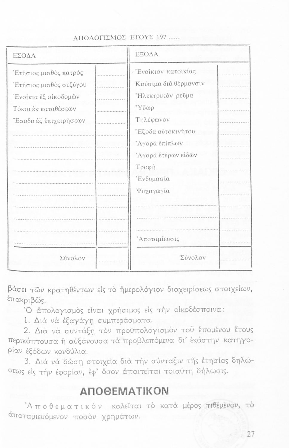 Μάθημα: Οικιακή Οικονομία