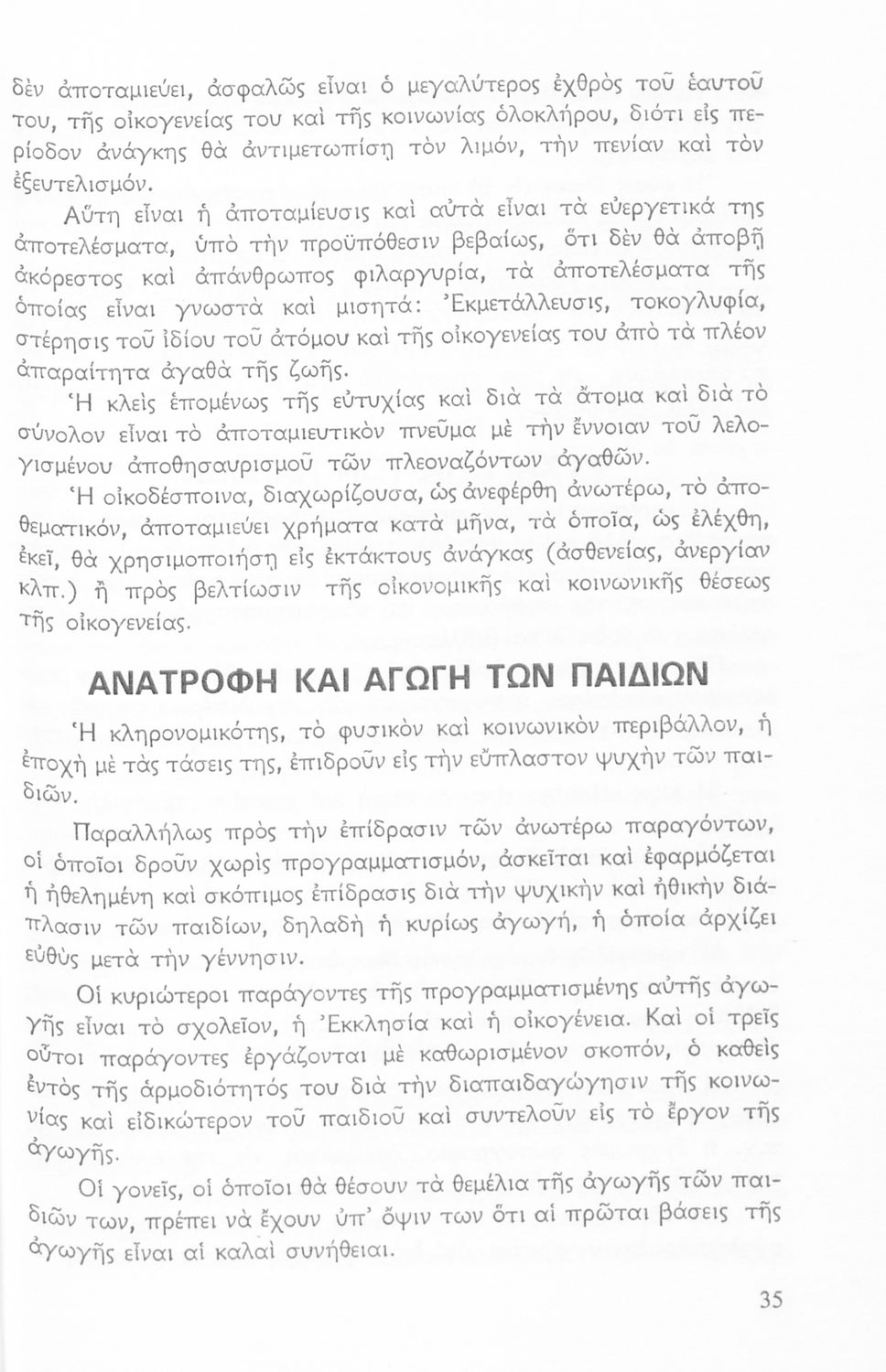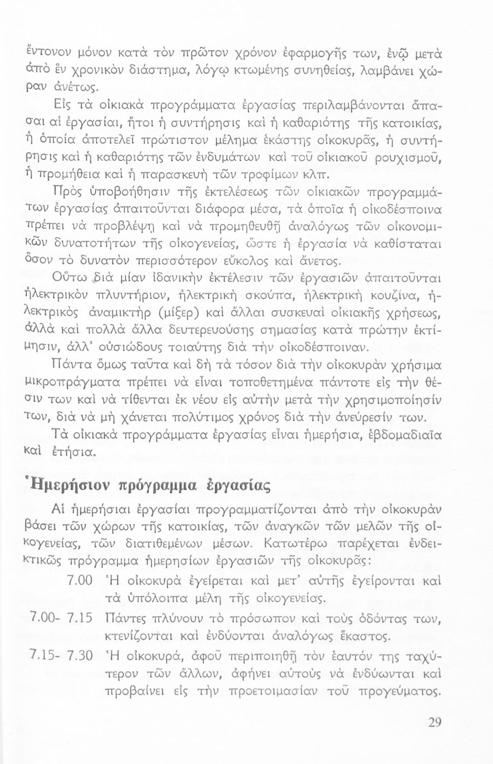 Σχολικό εγχειρίδιο της Ε΄ Τάξης του Γυμνασίου Θηλέων για το μάθημα των Οικοκυρικών. Αναφέρεται στο θεσμό της οικογένειας, τους ρόλους και τις αρμοδιότητες κάθε μέλους της. Συνεχίζει με την παιδοκομία, βρεφοκομία αναφέρεται από τον τοκετό, τη γέννηση και την ανατροφή του βρέφους, την ανάπτυξή του και τις παιδικές ασθένειες κ.α.