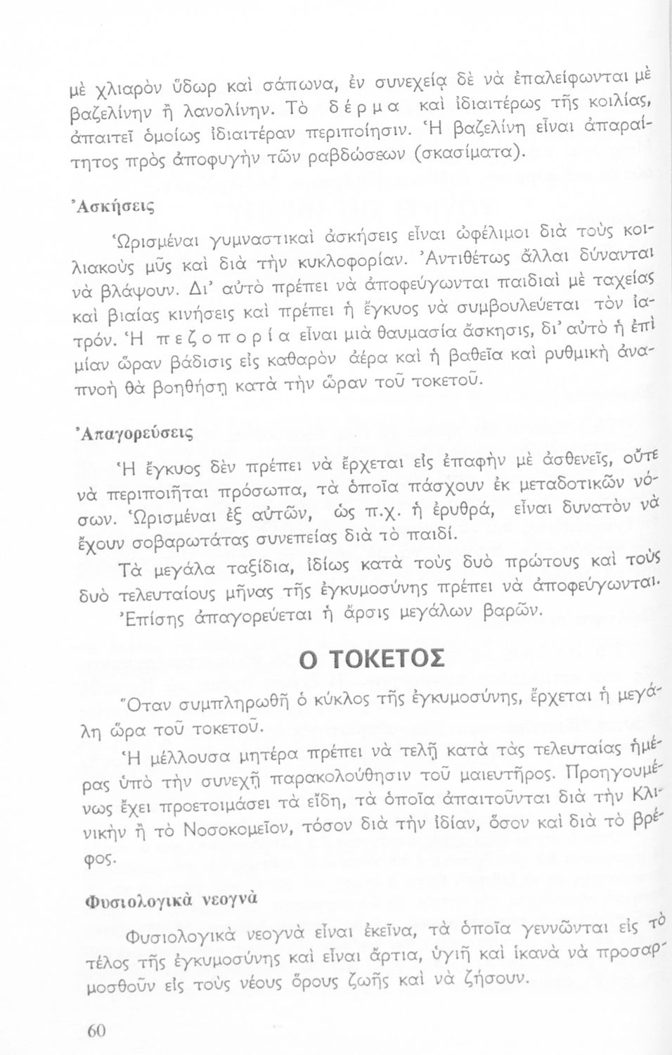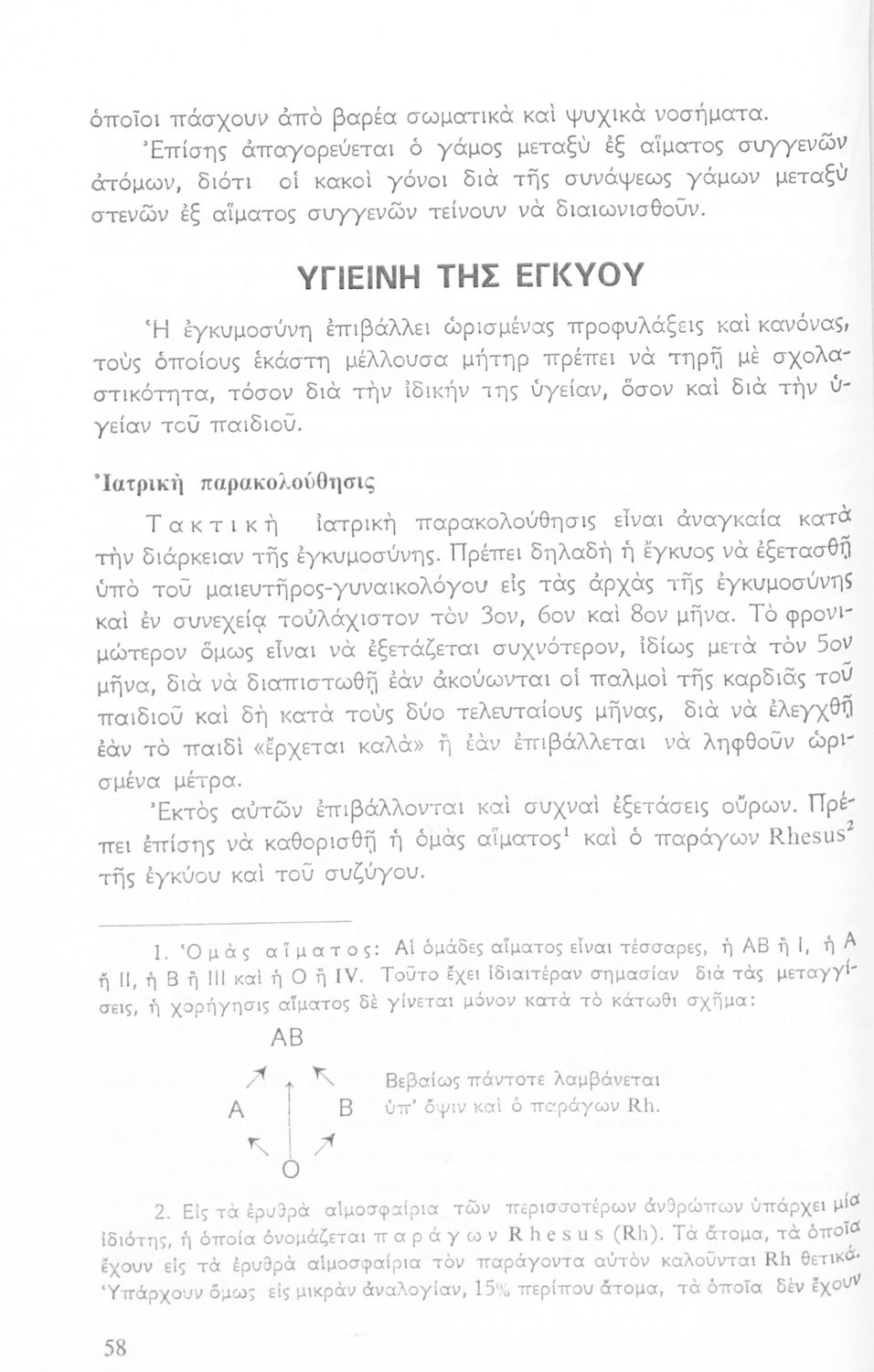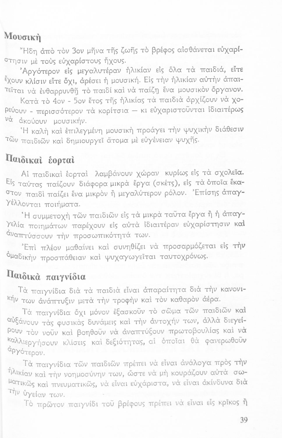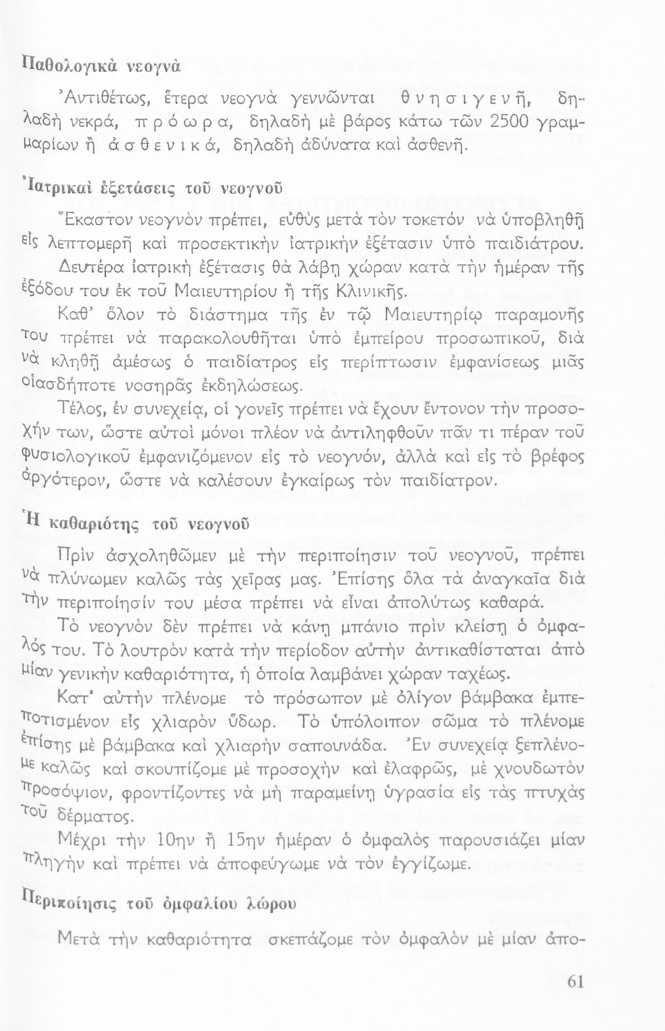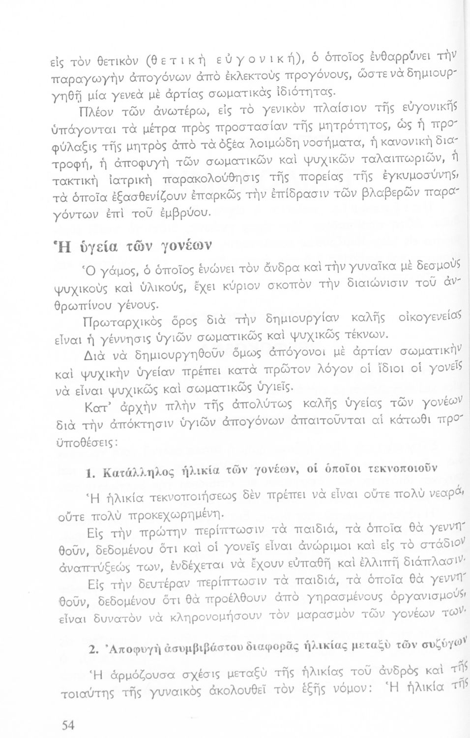 Σχολικό εγχειρίδιο της Ε΄ Τάξης του Γυμνασίου Θηλέων για το μάθημα των Οικοκυρικών. Αναφέρεται στο θεσμό της οικογένειας, τους ρόλους και τις αρμοδιότητες κάθε μέλους της. Συνεχίζει με την παιδοκομία, βρεφοκομία αναφέρεται από τον τοκετό, τη γέννηση και την ανατροφή του βρέφους, την ανάπτυξή του και τις παιδικές ασθένειες κ.α.