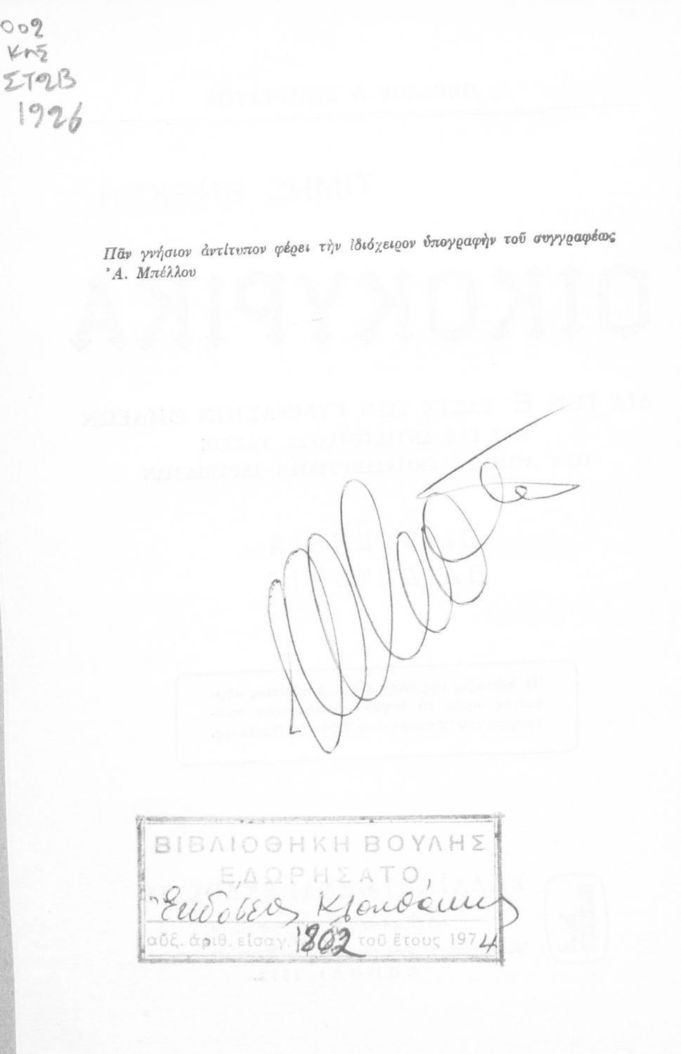Εντοπισμός πρωτοτύπου: Βιβλιοθήκη της Βουλής των Ελλήνων Κωδικός βιβλιοθήκης: 20560366 |