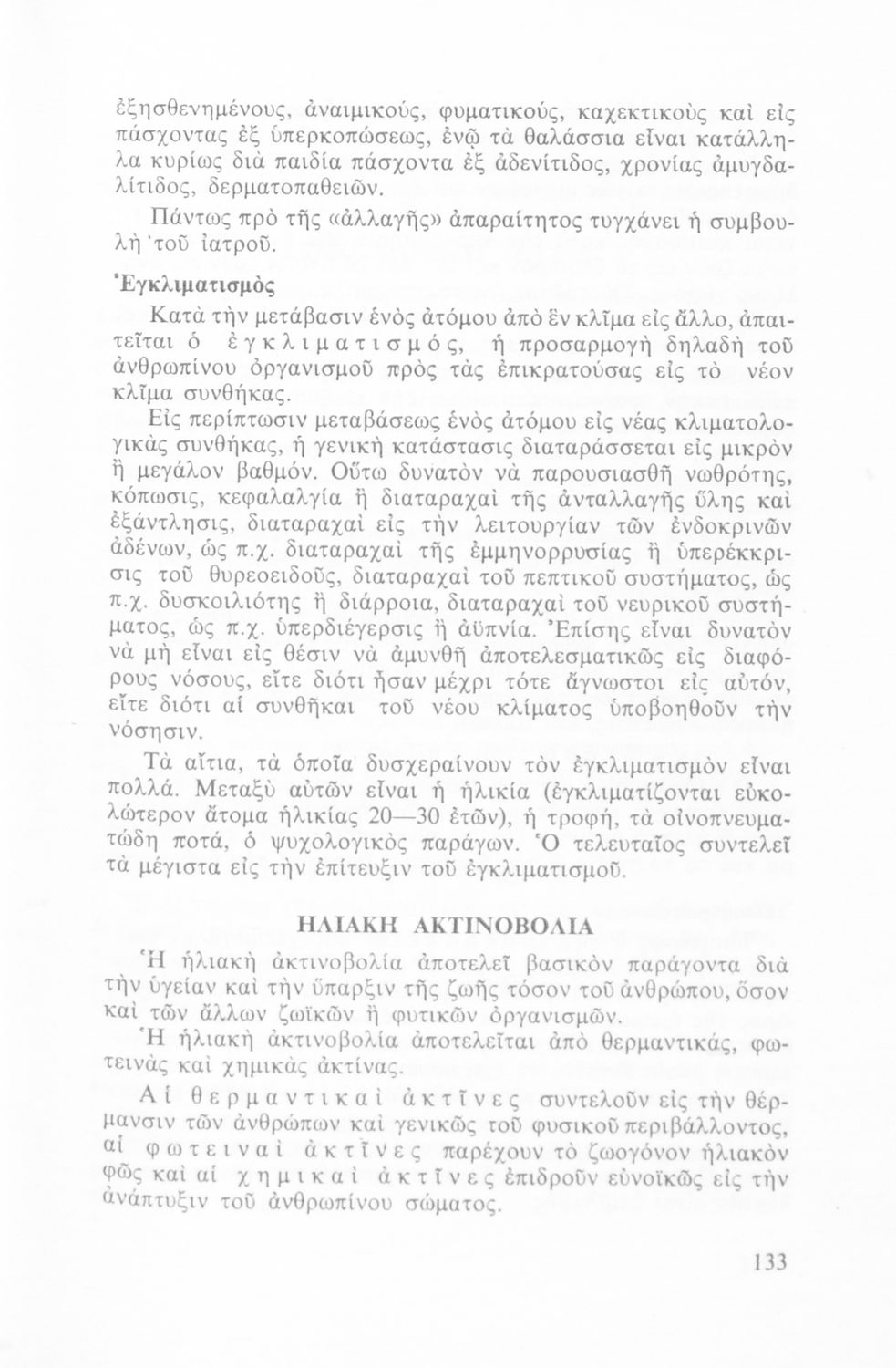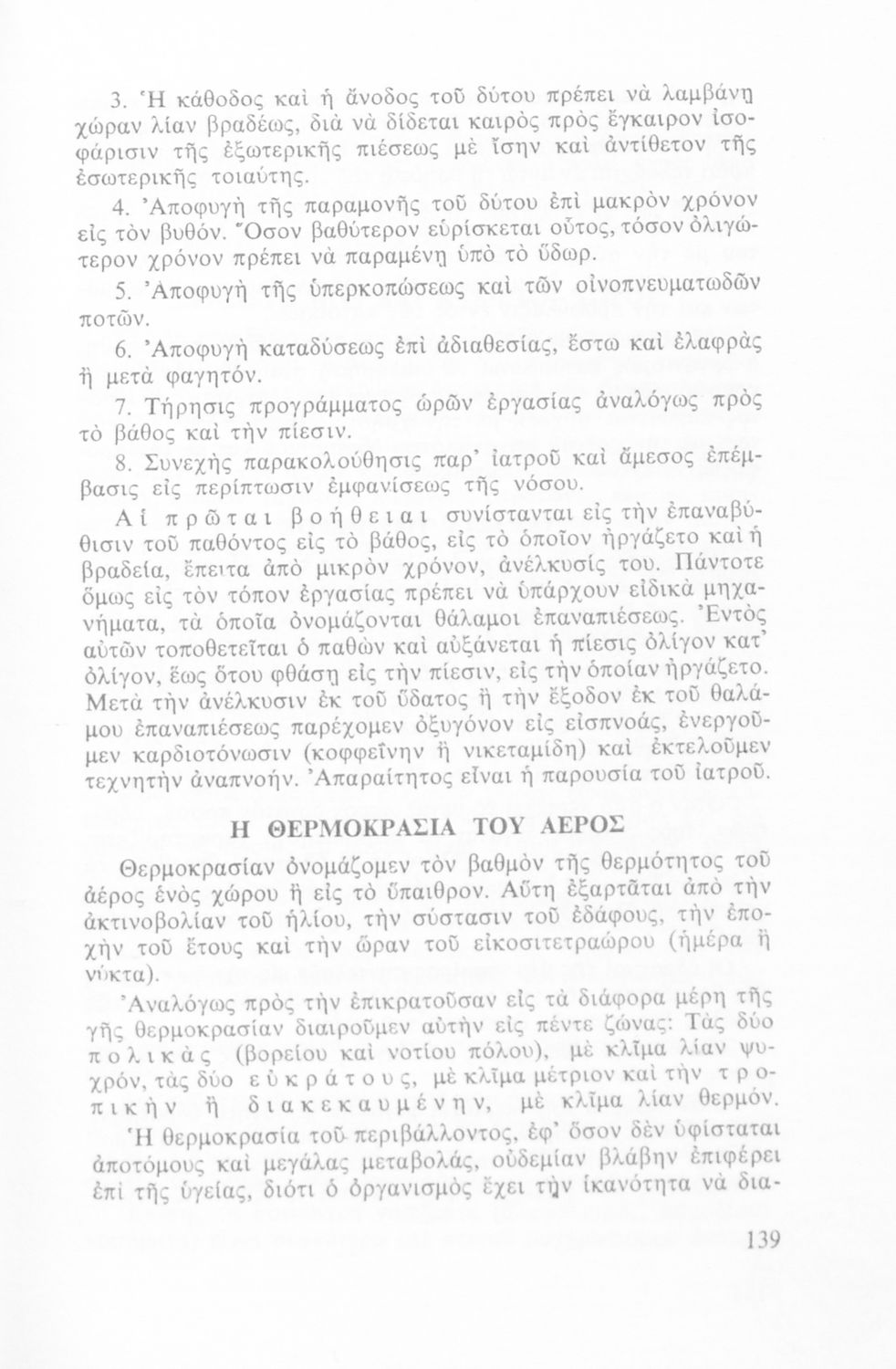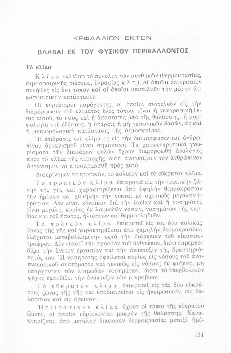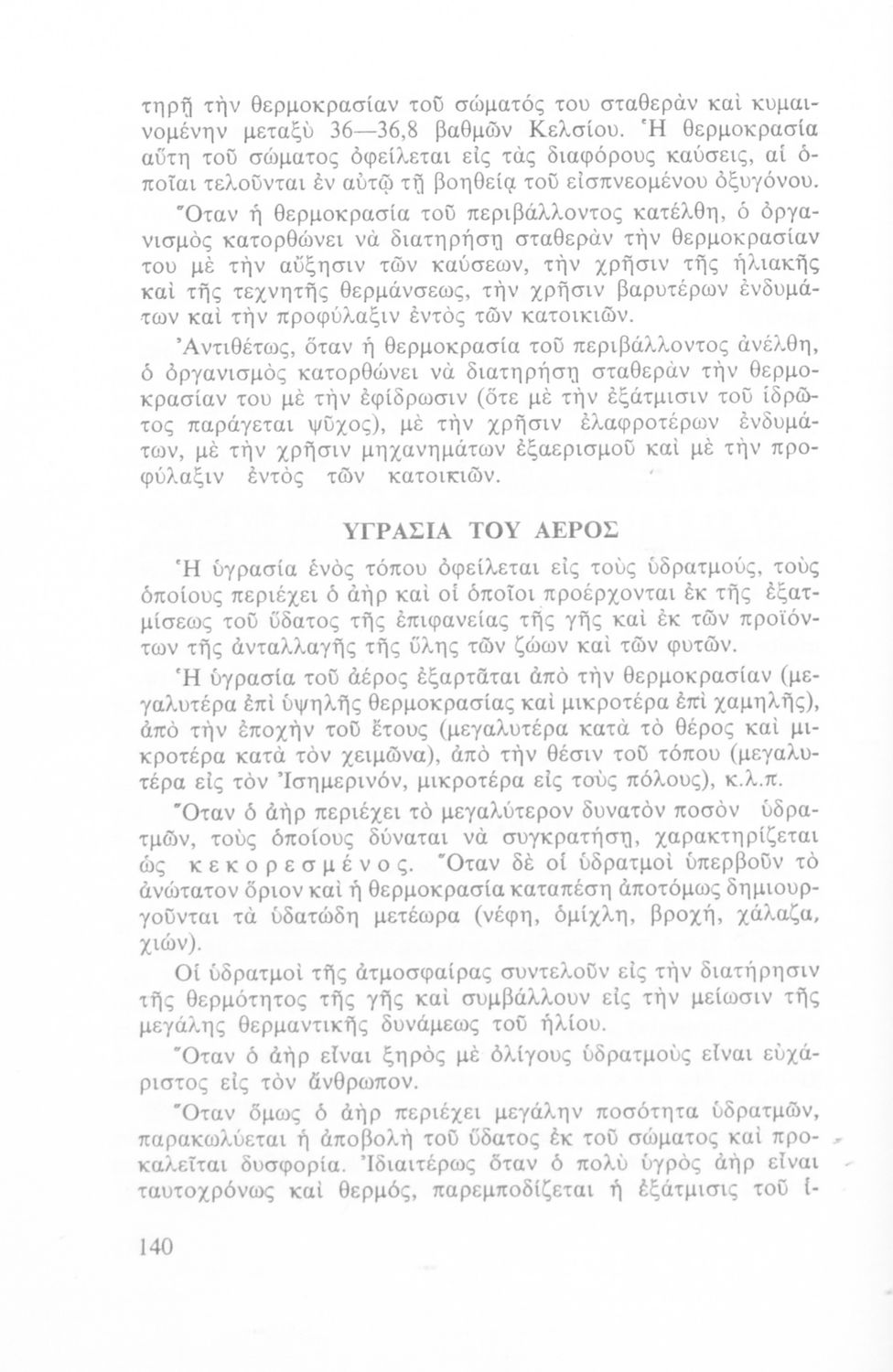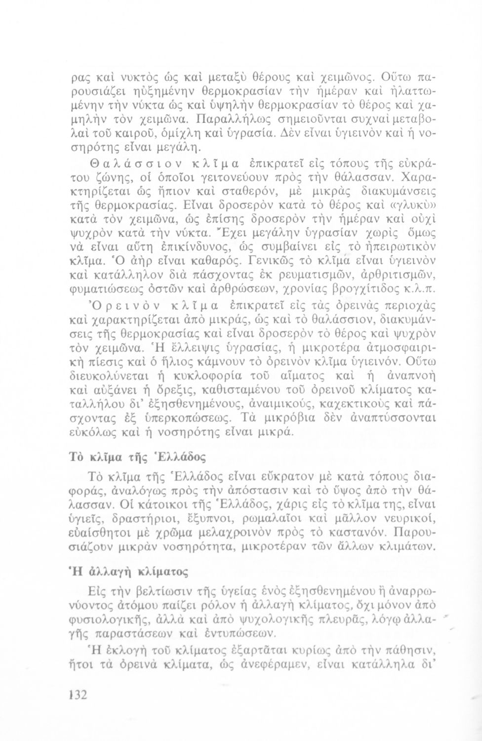 Σχολικό εγχειρίδιο Υγιεινής για τους μαθητές της Β' τάξης του Γυμνασίου. Το βιβλίο αναφέρεται στις συνθήκες και τις αιτίες που επηρεάζουν την υγεία του ατόμου ή μιας ομάδας ατόμων και παρουσιάζει τα μέτρα που πρέπει να ληφθούν για την ανάκτηση και διατήρηση της υγιεινής των ανθρώπων. Πιο συγκεκριμένα αναφέρεται στην επίδραση της ατμόσφαιρας, του νερού, των λοιμωδών νοσημάτων αλλά και της κληρονομικότητας.