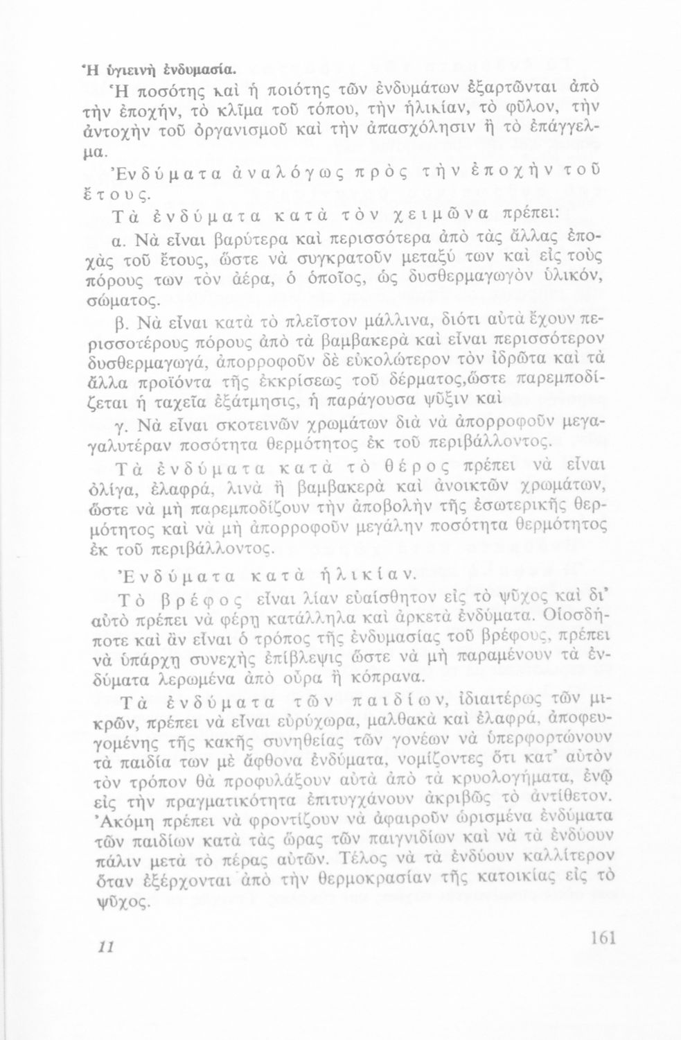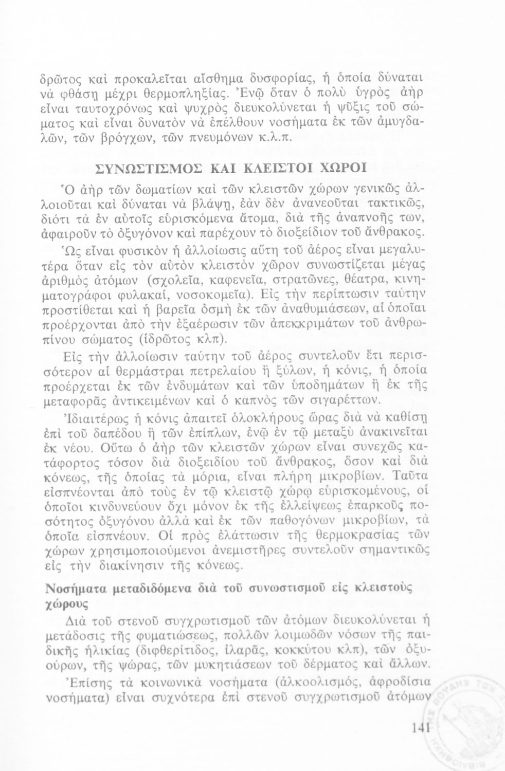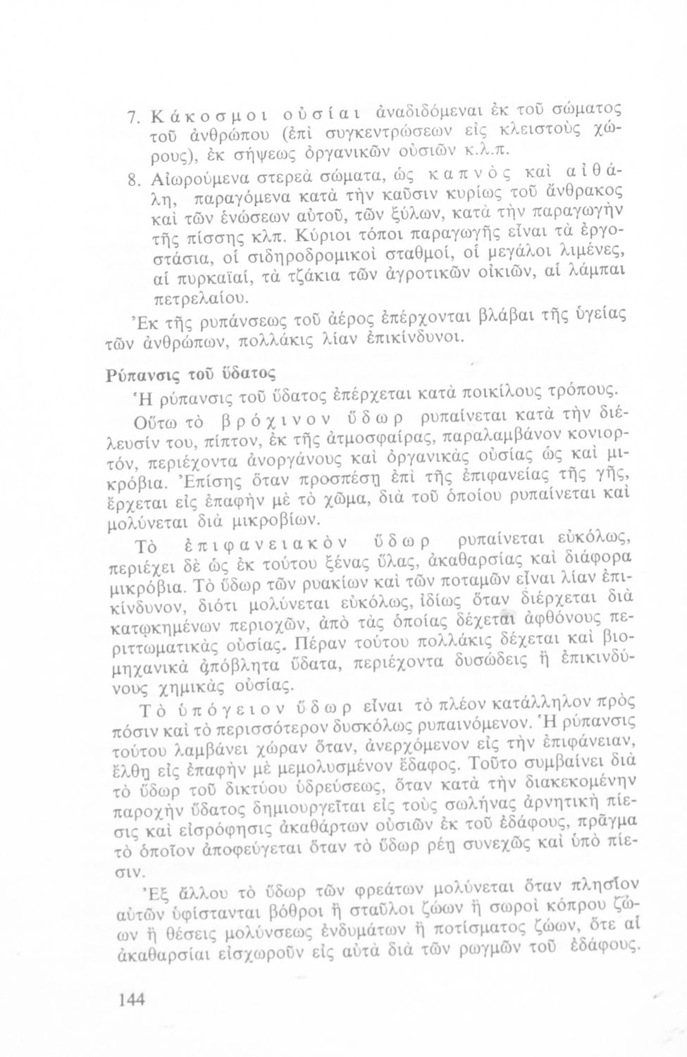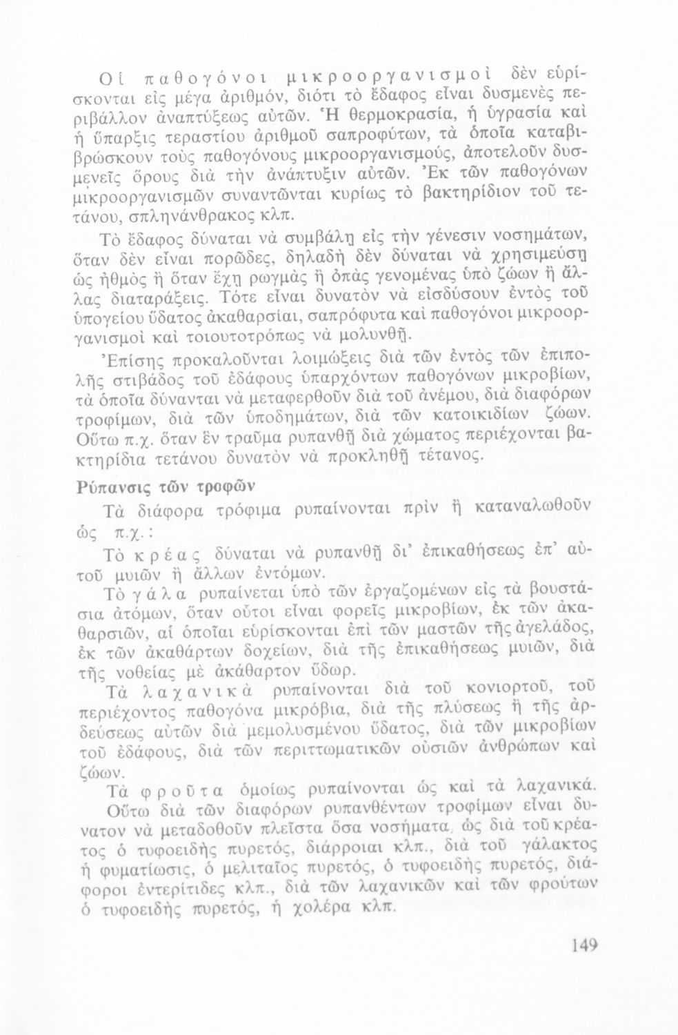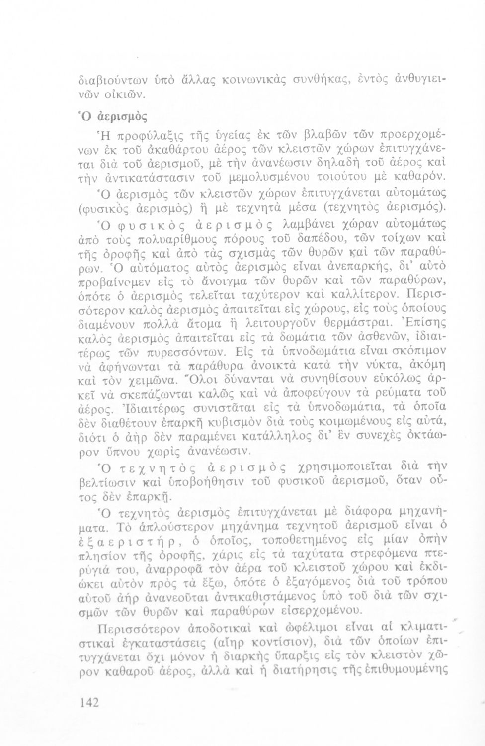 Σχολικό εγχειρίδιο Υγιεινής για τους μαθητές της Β' τάξης του Γυμνασίου. Το βιβλίο αναφέρεται στις συνθήκες και τις αιτίες που επηρεάζουν την υγεία του ατόμου ή μιας ομάδας ατόμων και παρουσιάζει τα μέτρα που πρέπει να ληφθούν για την ανάκτηση και διατήρηση της υγιεινής των ανθρώπων. Πιο συγκεκριμένα αναφέρεται στην επίδραση της ατμόσφαιρας, του νερού, των λοιμωδών νοσημάτων αλλά και της κληρονομικότητας.