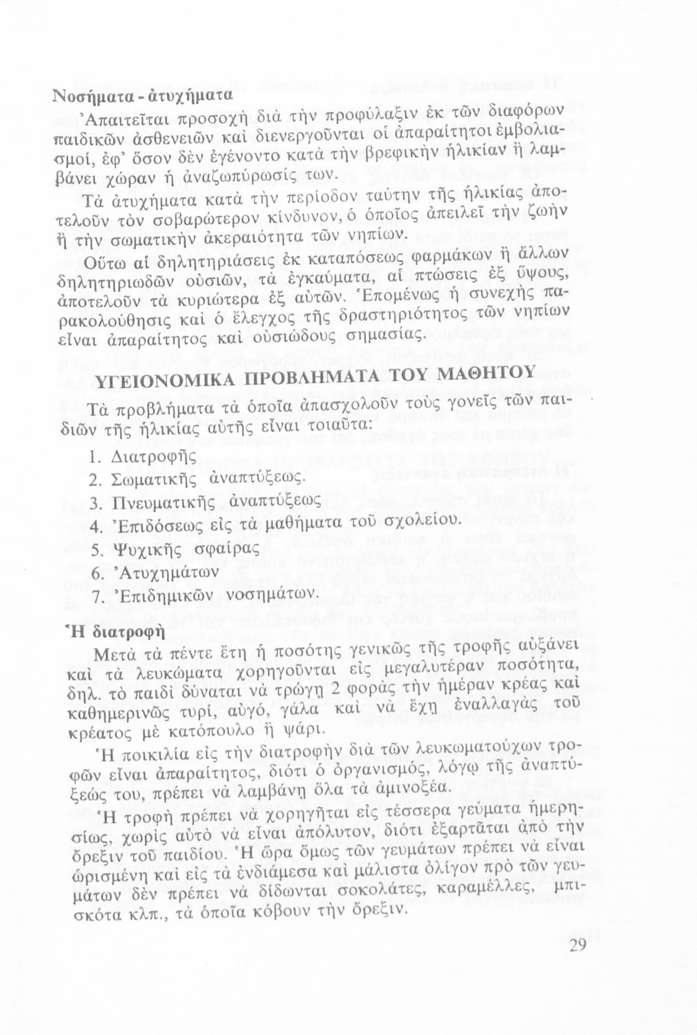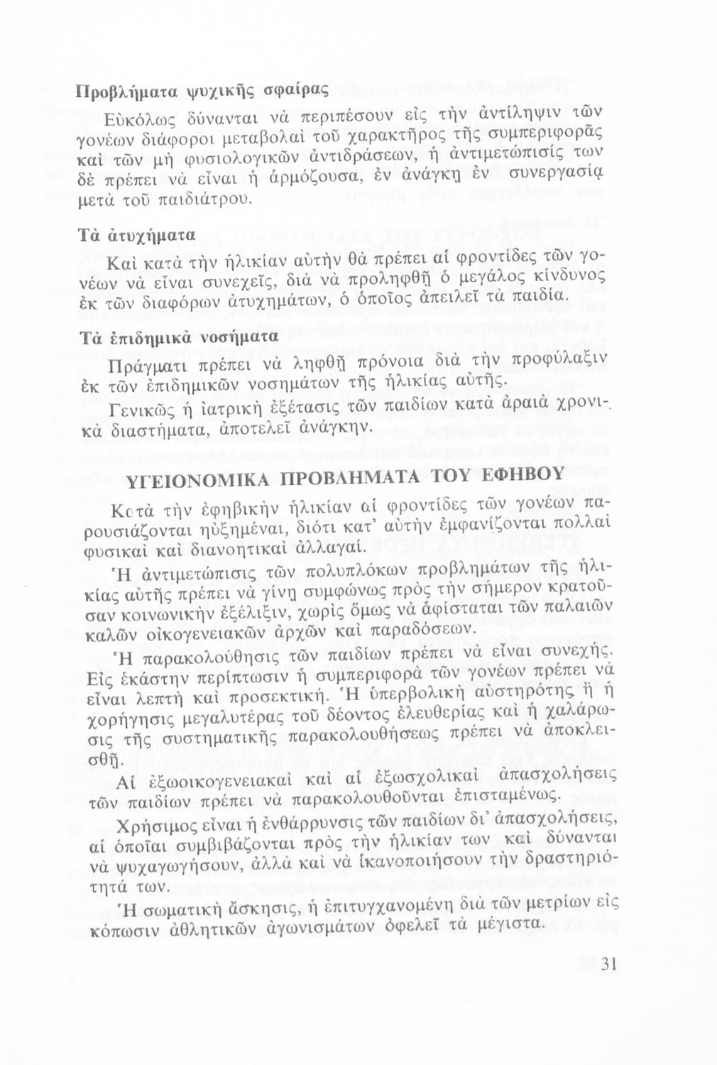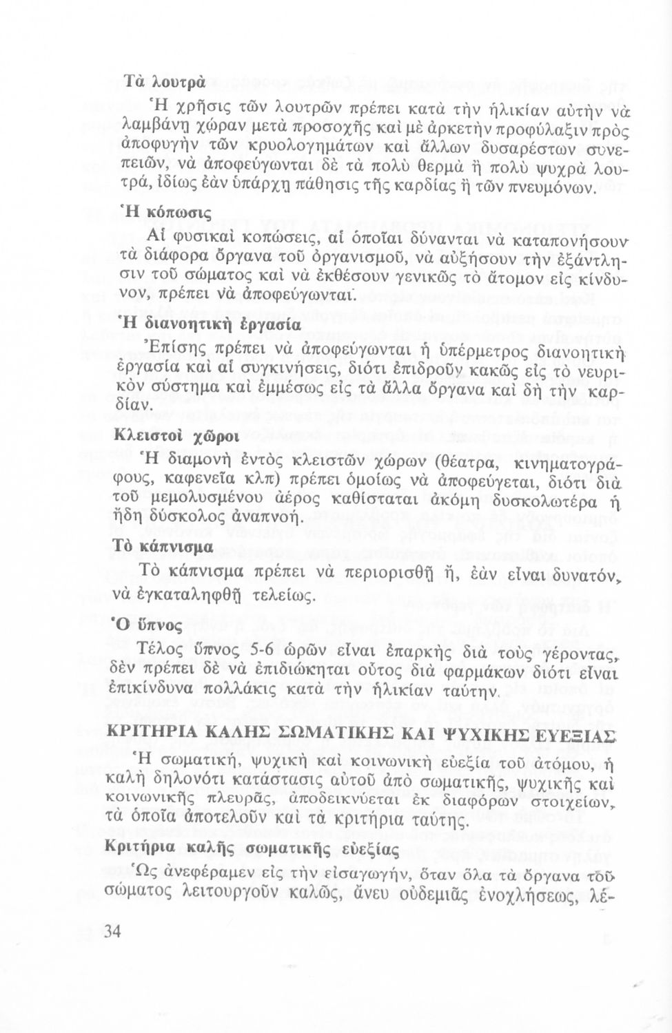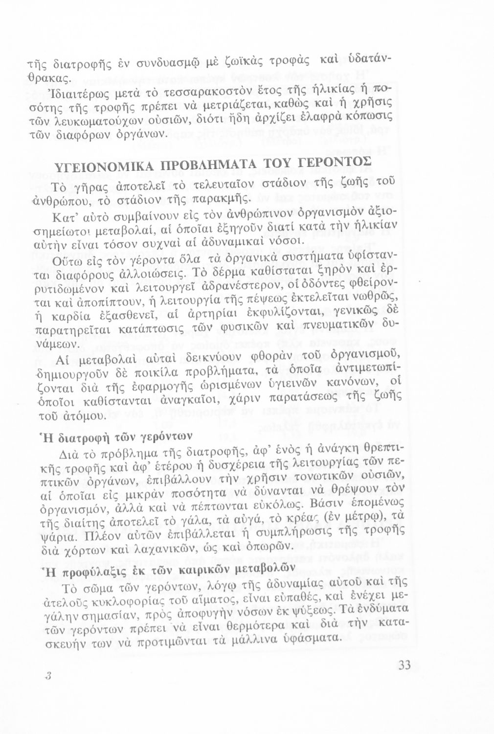 Σχολικό εγχειρίδιο Υγιεινής για τους μαθητές της Β' τάξης του Γυμνασίου. Το βιβλίο αναφέρεται στις συνθήκες και τις αιτίες που επηρεάζουν την υγεία του ατόμου ή μιας ομάδας ατόμων και παρουσιάζει τα μέτρα που πρέπει να ληφθούν για την ανάκτηση και διατήρηση της υγιεινής των ανθρώπων. Πιο συγκεκριμένα αναφέρεται στην επίδραση της ατμόσφαιρας, του νερού, των λοιμωδών νοσημάτων αλλά και της κληρονομικότητας.
