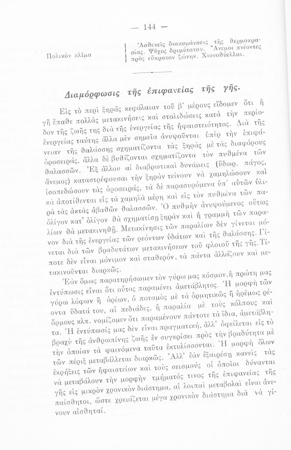 Σχολικό εγχειρίδιο Γεωγραφίας Δ΄ Γυμνασίου που περιλαμβάνει στοιχεία ιστορικής γεωλογίας, και φυσικής και μαθηματικής γεωγραφίας και εστιάζει στη βιογεωγραφία και του κλίμα της Ελλάδας.
