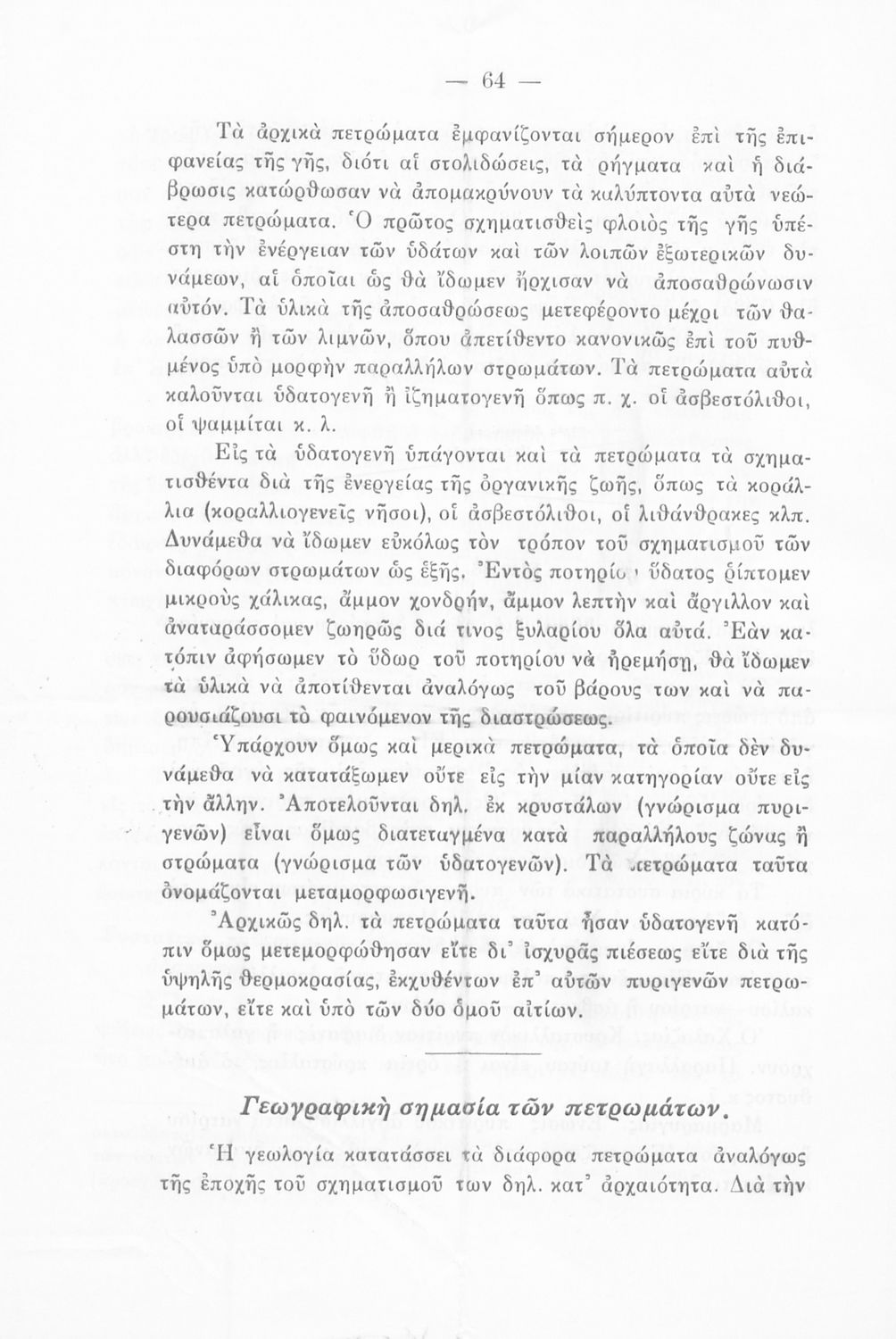 Σχολικό εγχειρίδιο Γεωλογίας/Ορυκτολογίας για την Δ΄ Γυμνασίου που περιλαμβάνει χθονογραφική, δυναμική και ιστορική γεωλογία, και γενική και ειδική ορυκτολογία. Ο συγγραφέας ήταν καθηγητής πανεπιστήμιου και η ...