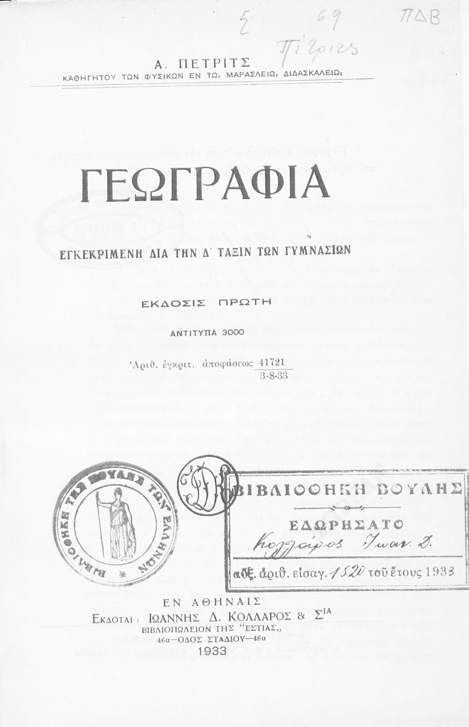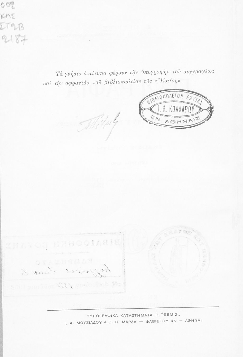 Εντοπισμός πρωτοτύπου: Βιβλιοθήκη της Βουλής των Ελλήνων