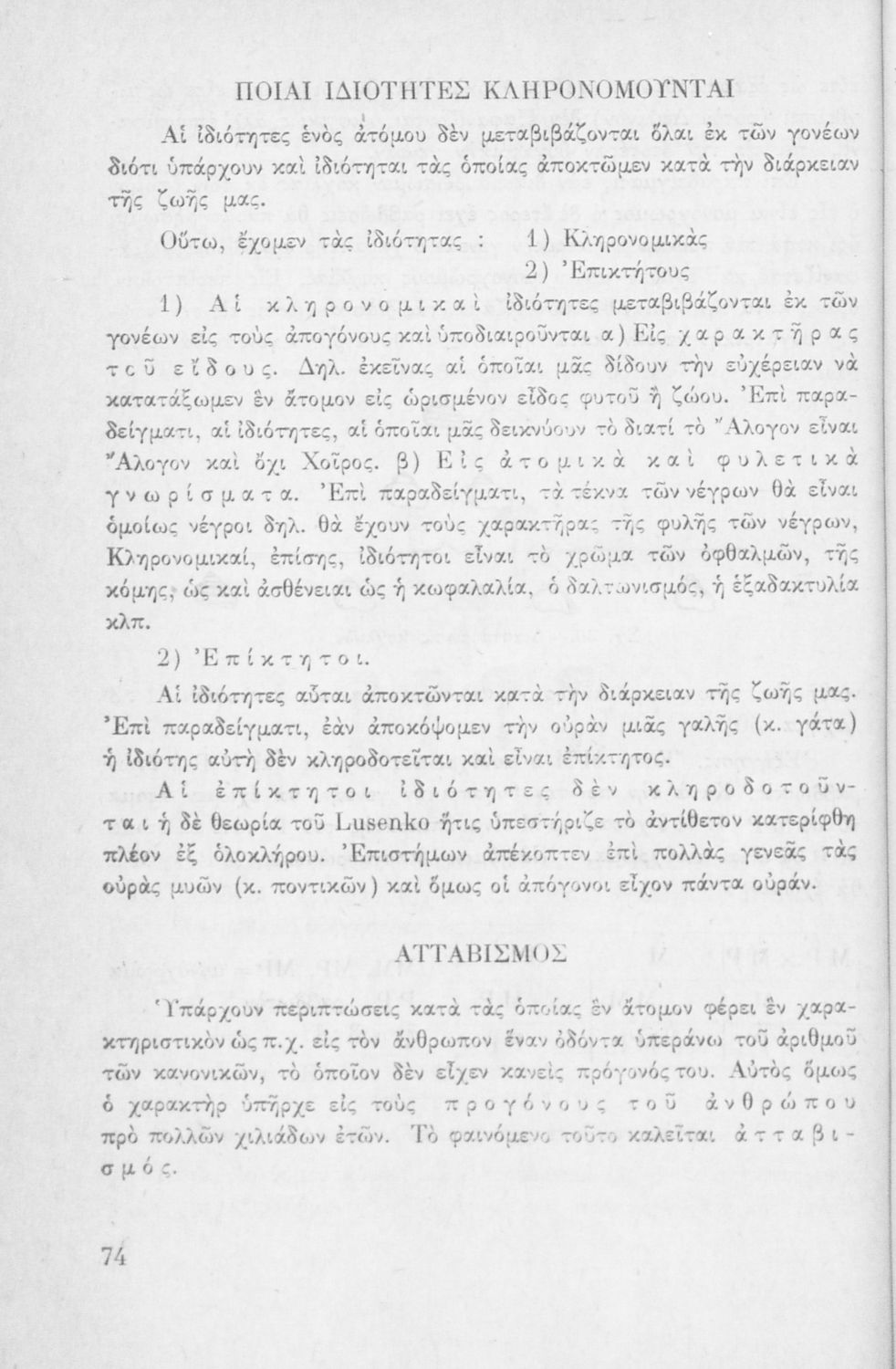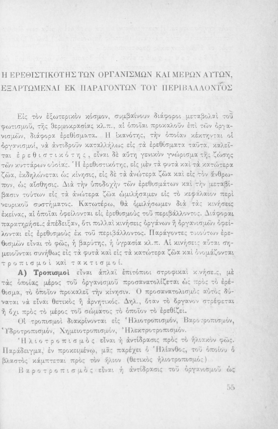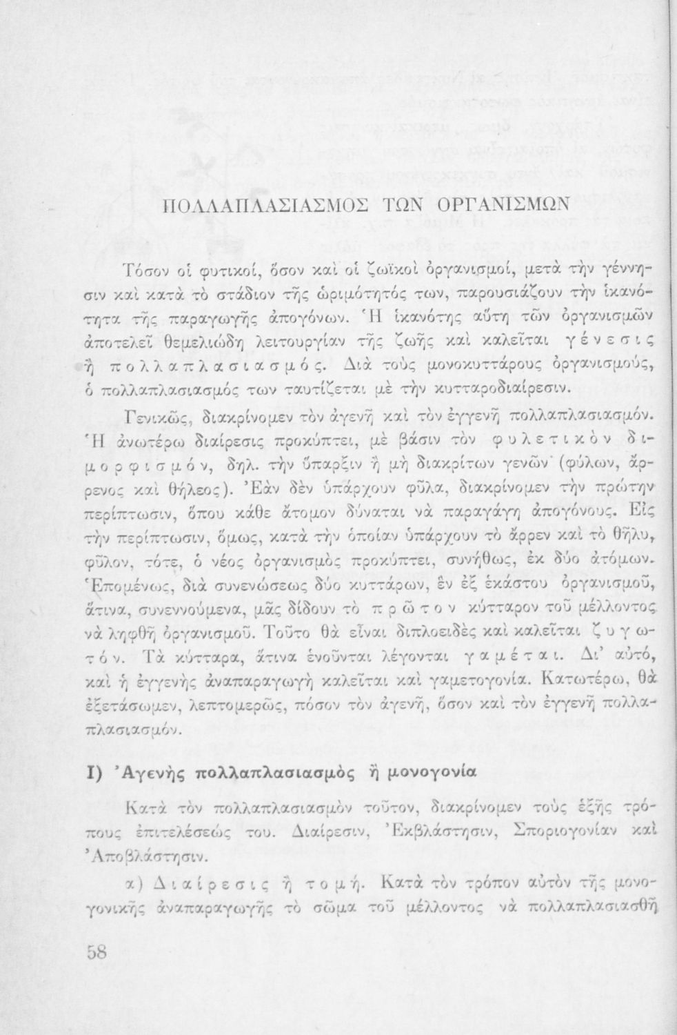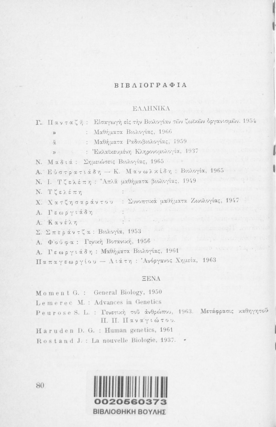 Σχολικό εγχειρίδιο Βιολογίας Δ΄ Γυμνασίου που εστιάζει στις συνθήκες γέννησης, μεταβολής και θανάτου των έμβιων οργανισμών. Ο συγγραφέας ήταν καθηγητής της γενικής Βιολογίας στο Πανεπιστήμιο Αθηνών.
