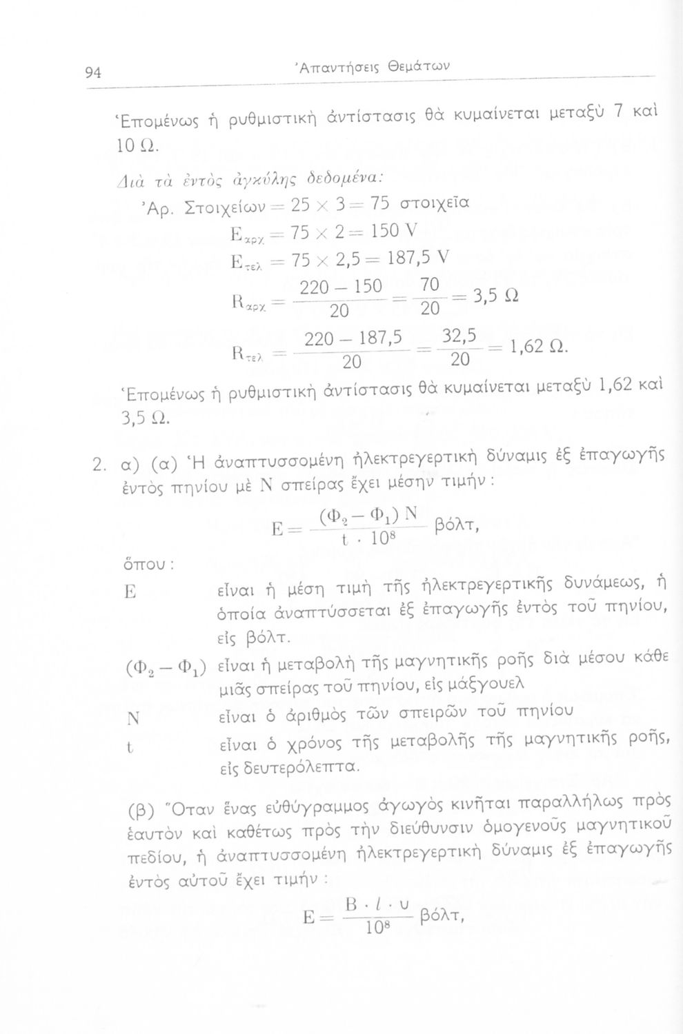 Σχολικό εγχειρίδιο Μηχανικής και Ηλεκτροτεχνίας που περιέχει τα θέματα εξετάσεων για τις τεχνικές σχολές των βοηθών εργοδηγών ηλεκτρικών εγκαταστάσεων.