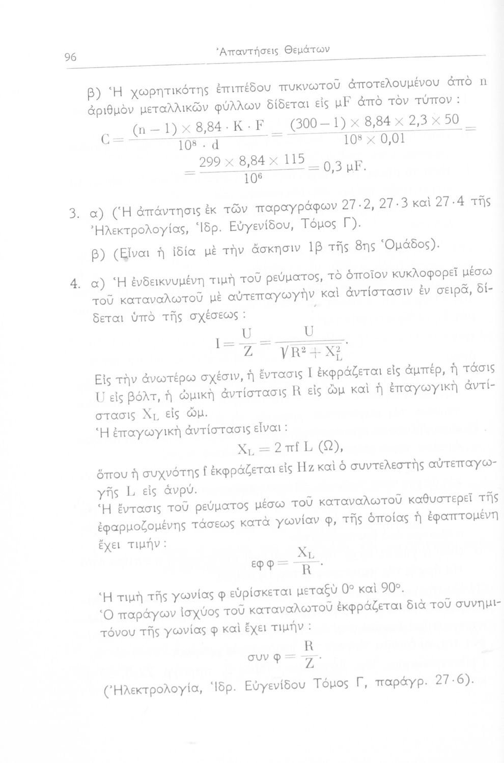 Μαθητικό Βοήθημα για τις τάξεις του Γυμνασίου και τις Τεχνικές Σχολές Βοηθών Εργοδηγών Μηχανουργικών και Ηλεκτρικών Εγκαταστάσεων που περιέχει τις απαντήσεις των θεμάτων των πτυχιακών εξετάσεων για τη σχολή Τεχνικών Βοηθών Εργοδηγών για Ηλεκτρικές Εγκαταστάσεις.