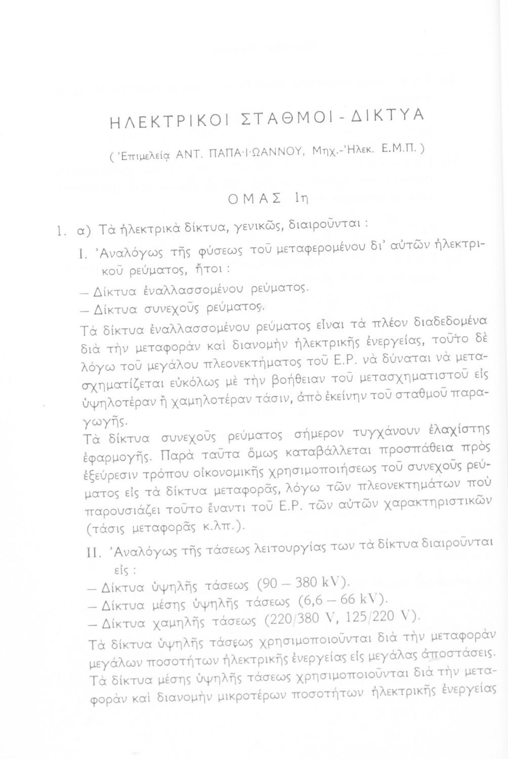 Μάθημα:  Ηλεκτρολογία