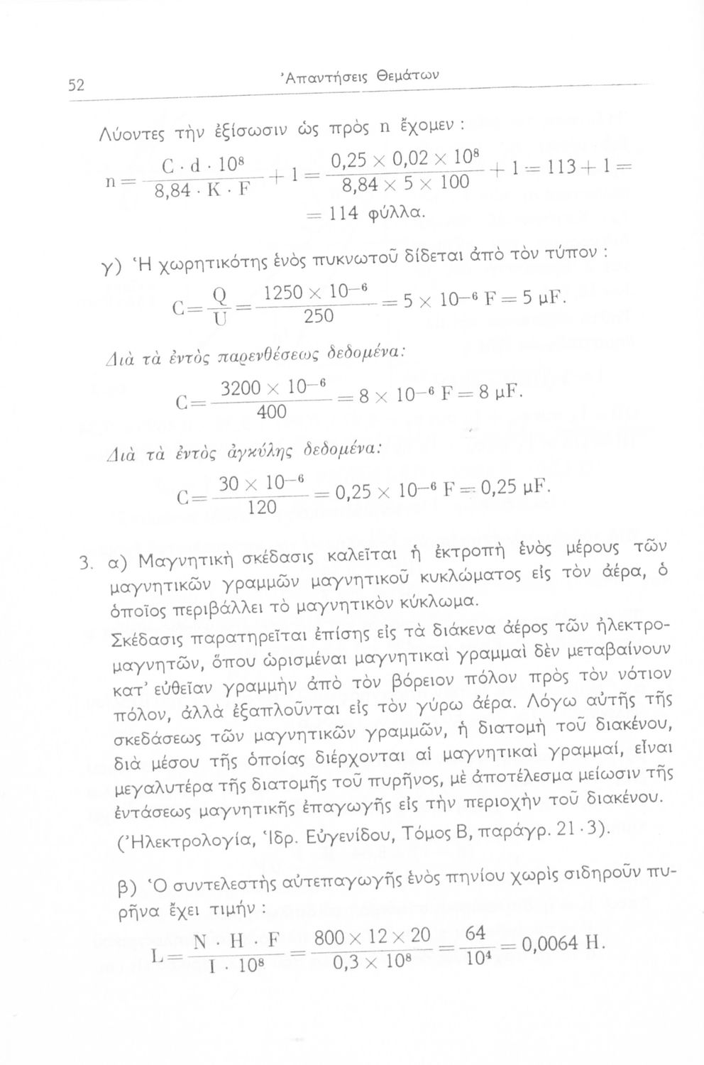 Μαθητικό Βοήθημα για τις τάξεις του Γυμνασίου και τις Τεχνικές Σχολές Βοηθών Εργοδηγών Μηχανουργικών και Ηλεκτρικών Εγκαταστάσεων που περιέχει τις απαντήσεις των θεμάτων των πτυχιακών εξετάσεων για τη σχολή Τεχνικών Βοηθών Εργοδηγών για Ηλεκτρικές Εγκαταστάσεις.