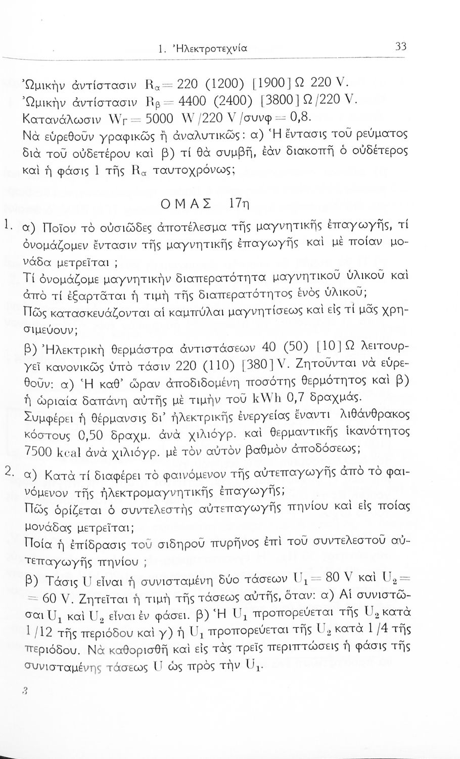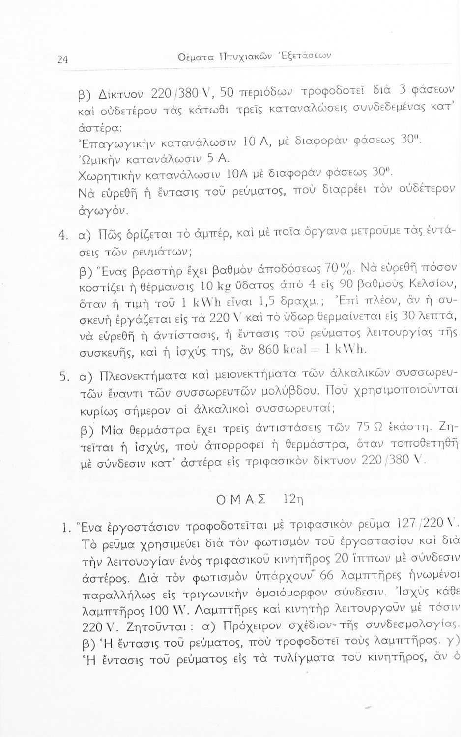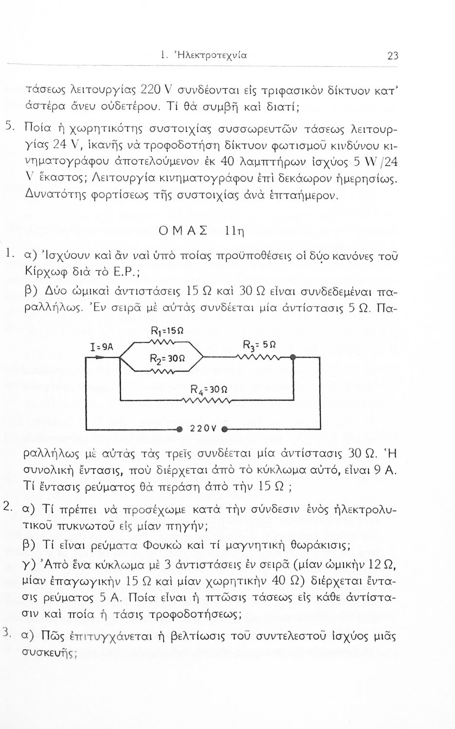 Σχολικό εγχειρίδιο Μηχανικής και Ηλεκτροτεχνίας που περιέχει τα θέματα εξετάσεων για τις τεχνικές σχολές των βοηθών εργοδηγών ηλεκτρικών εγκαταστάσεων.