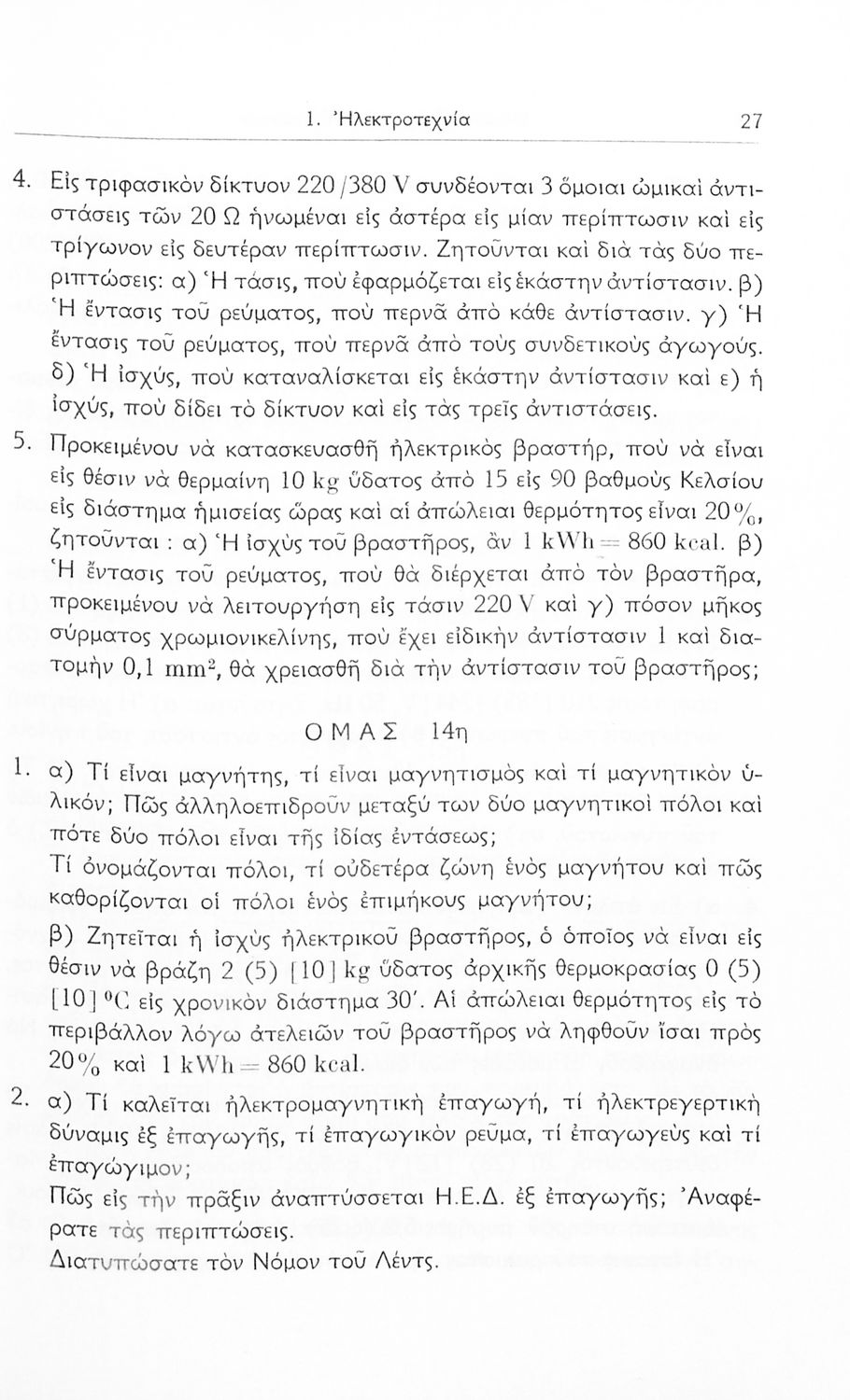 Σχολικό εγχειρίδιο Μηχανικής και Ηλεκτροτεχνίας που περιέχει τα θέματα εξετάσεων για τις τεχνικές σχολές των Ηλεκτροτεχνιτών και των Μηχανοτεχνιτών.