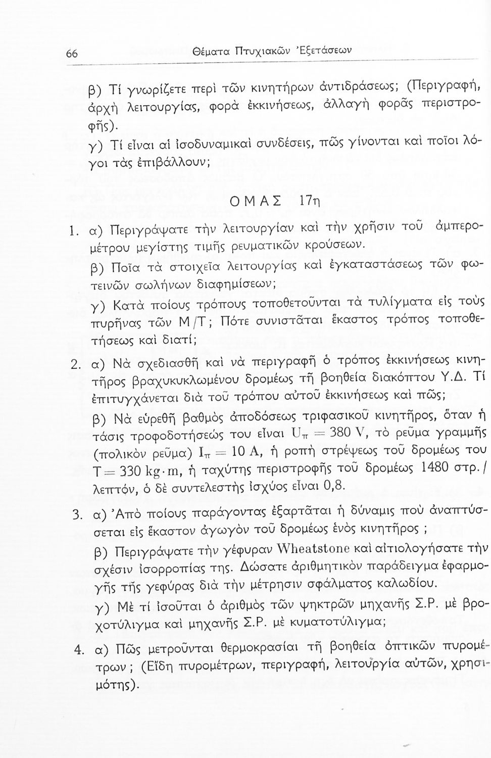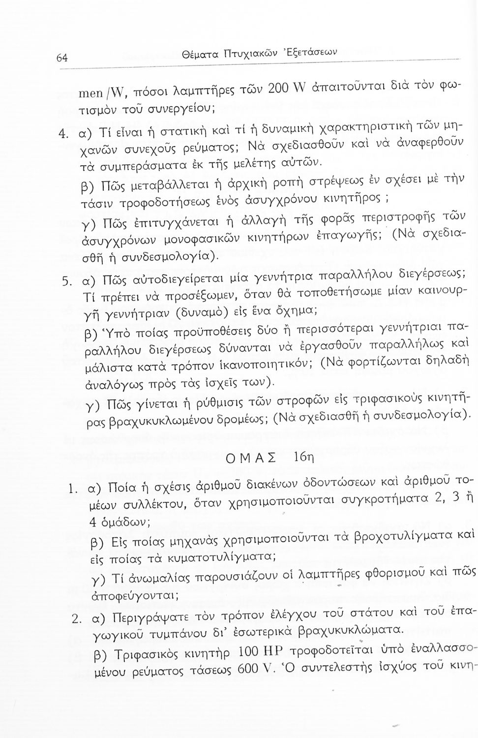 Σχολικό εγχειρίδιο Μηχανικής και Ηλεκτροτεχνίας που περιέχει τα θέματα εξετάσεων για τις τεχνικές σχολές των Ηλεκτροτεχνιτών και των Μηχανοτεχνιτών.