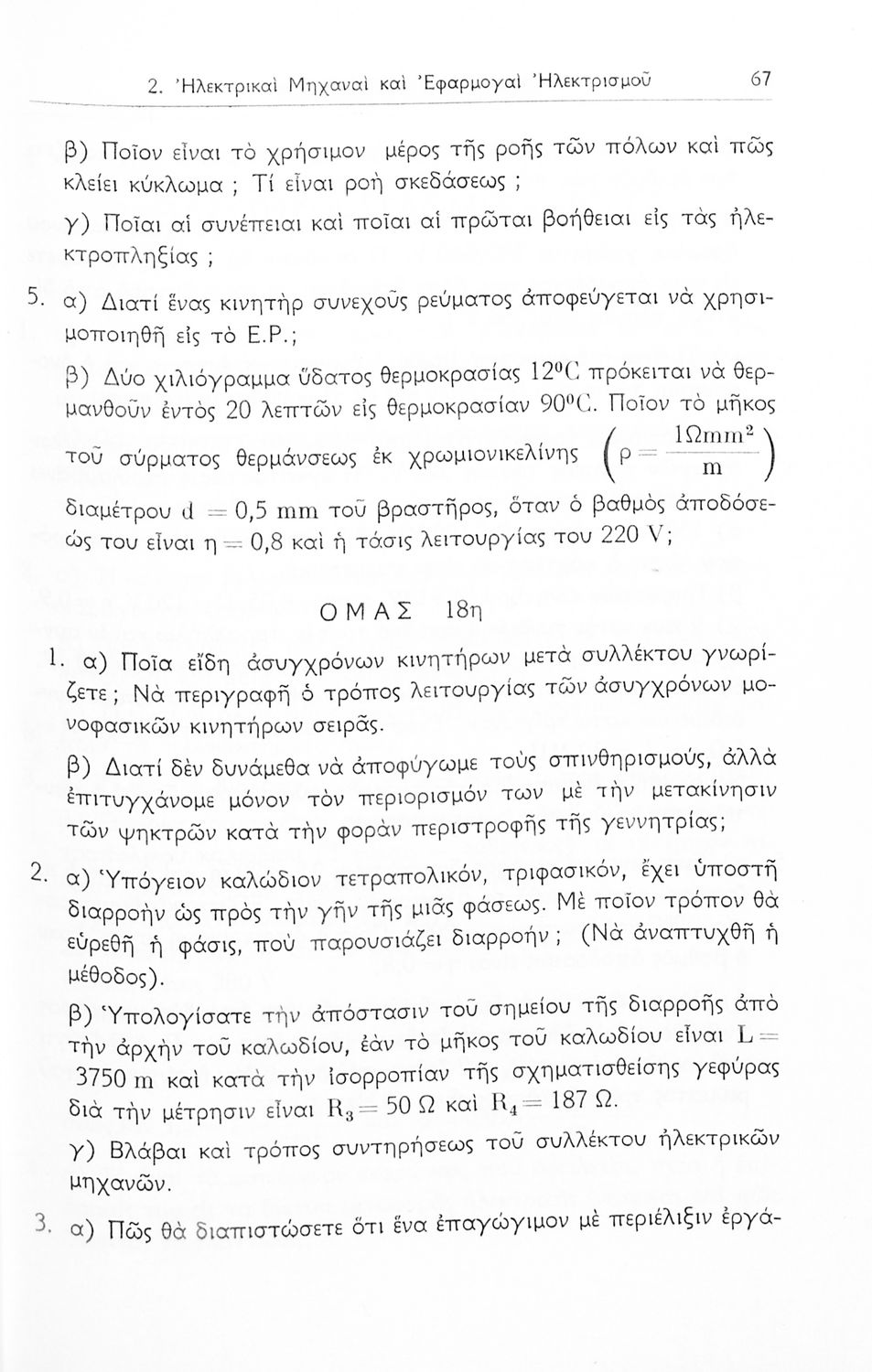 Σχολικό εγχειρίδιο Μηχανικής και Ηλεκτροτεχνίας που περιέχει τα θέματα εξετάσεων για τις τεχνικές σχολές των βοηθών εργοδηγών ηλεκτρικών εγκαταστάσεων.