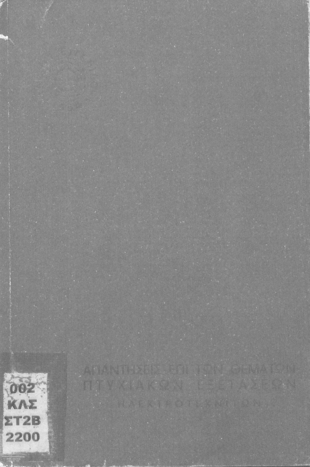 Μαθητικό Βοήθημα για τις τάξεις του Γυμνασίου και τις Τεχνικές Σχολές Βοηθών Εργοδηγών Μηχανουργικών και Ηλεκτρικών Εγκαταστάσεων που περιέχει τις απαντήσεις των θεμάτων των πτυχιακών εξετάσεων για τη σχολή ...