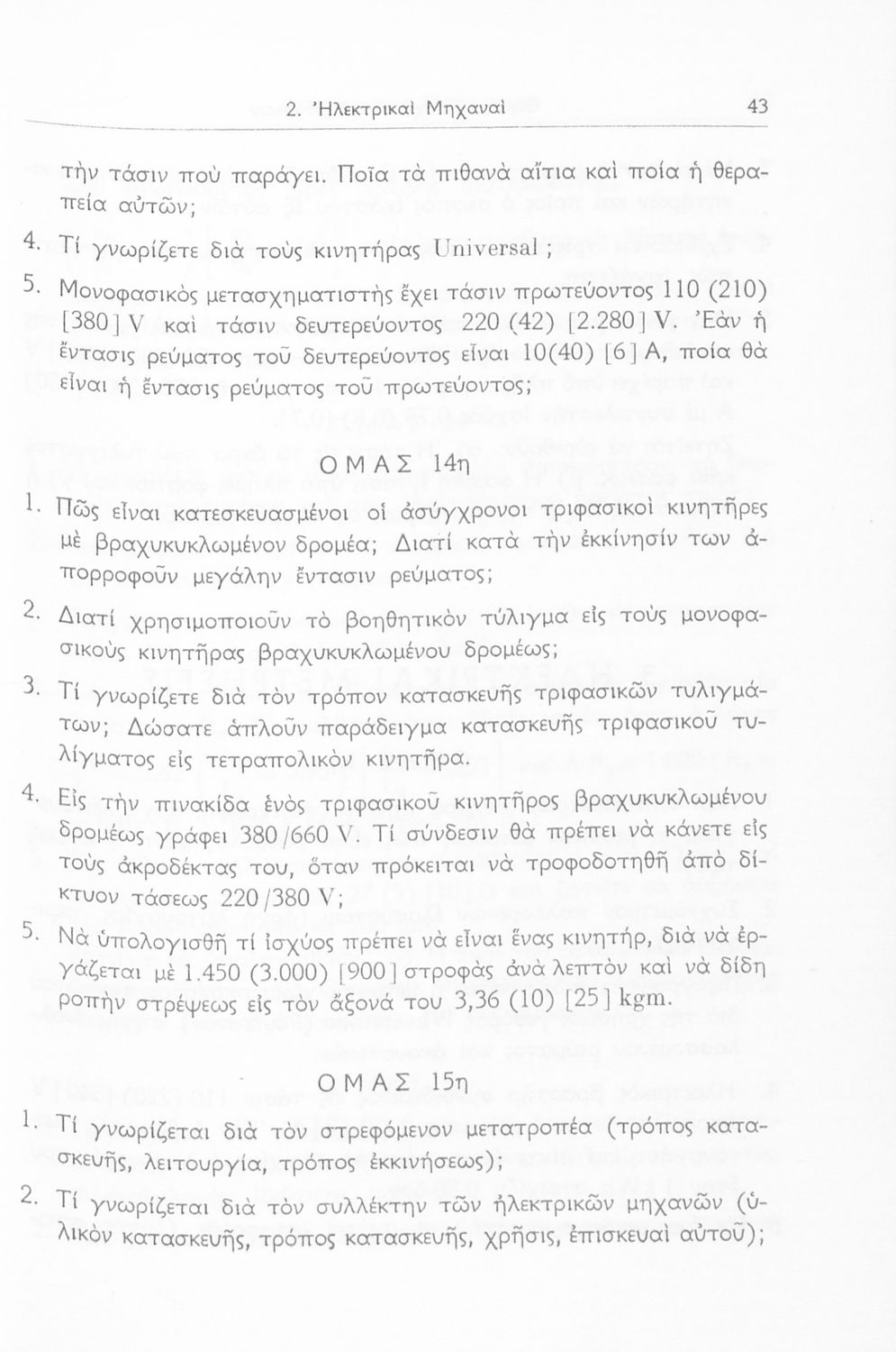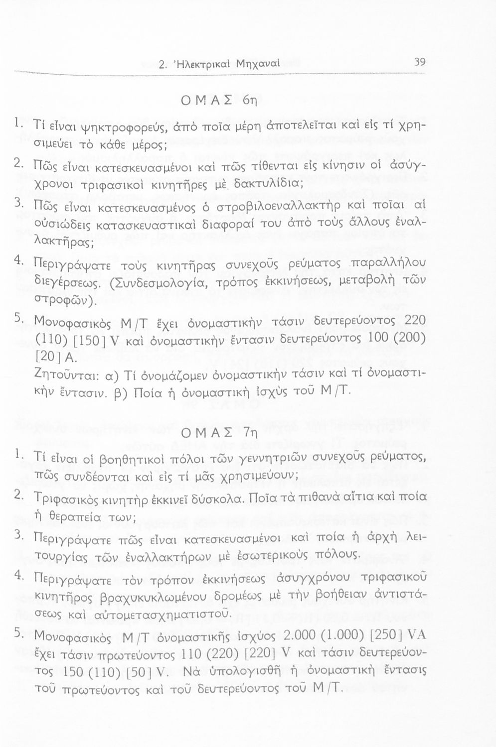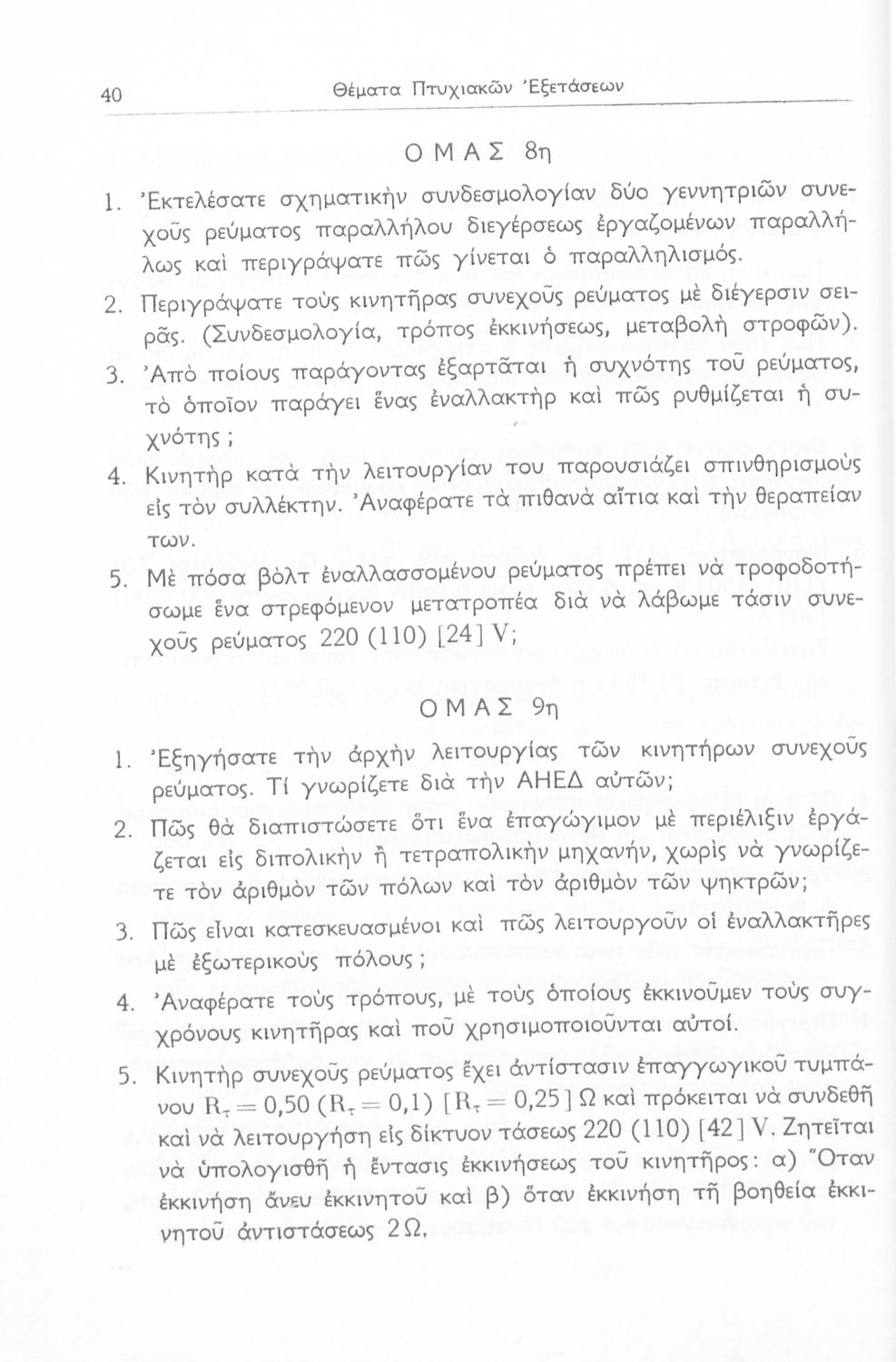 Σχολικό εγχειρίδιο Μηχανικής και Ηλεκτροτεχνίας που περιέχει τα θέματα εξετάσεων για τις τεχνικές σχολές των Ηλεκτροτεχνιτών και των Μηχανοτεχνιτών.