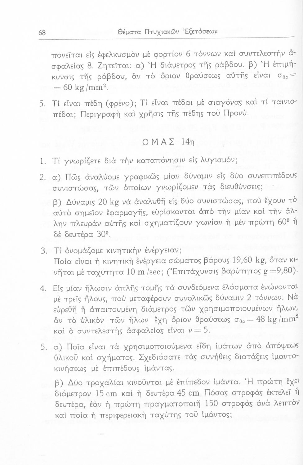 Σχολικό εγχειρίδιο Μηχανικής και Ηλεκτροτεχνίας που περιέχει τα θέματα εξετάσεων για τις τεχνικές σχολές των Ηλεκτροτεχνιτών και των Μηχανοτεχνιτών.