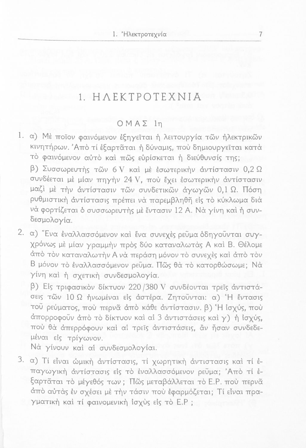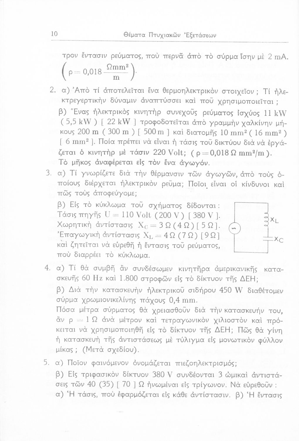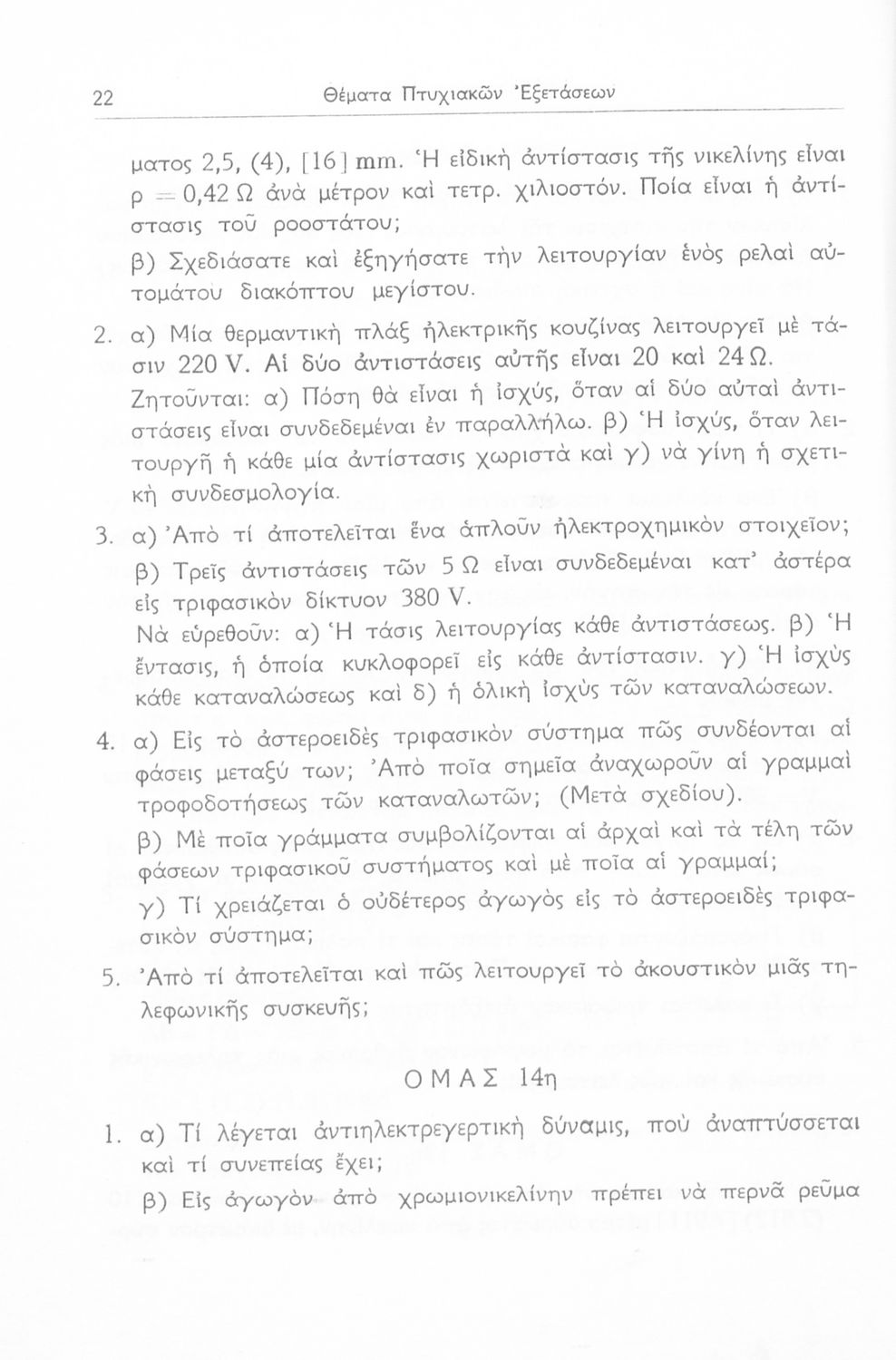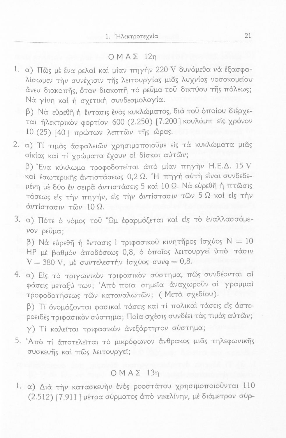 Σχολικό εγχειρίδιο Μηχανικής και Ηλεκτροτεχνίας που περιέχει τα θέματα εξετάσεων για τις τεχνικές σχολές των βοηθών εργοδηγών ηλεκτρικών εγκαταστάσεων.