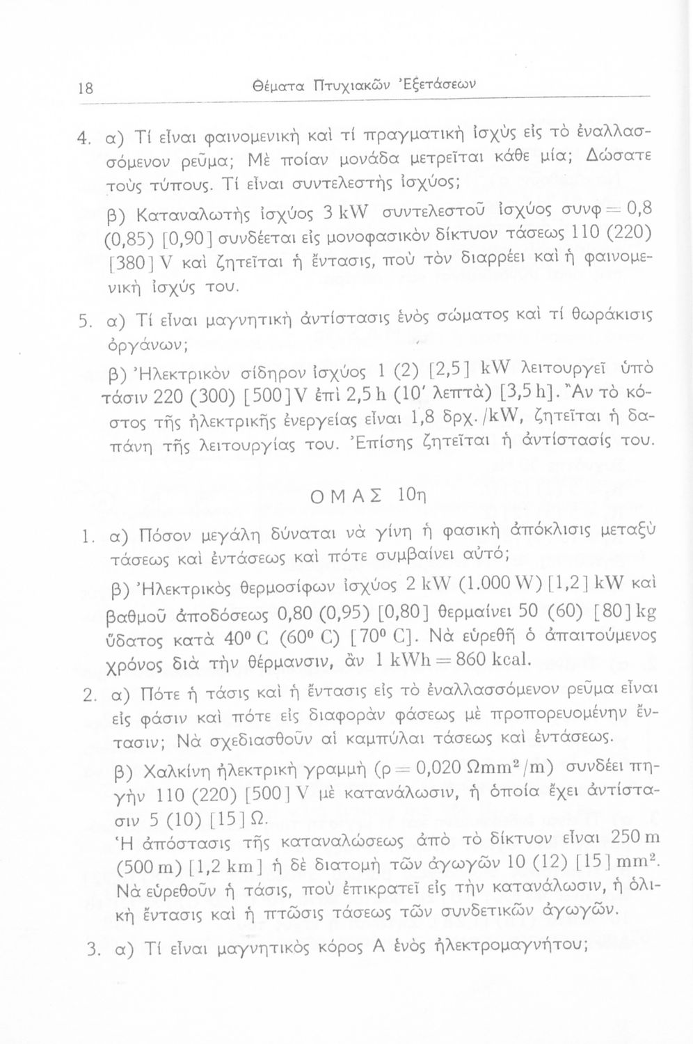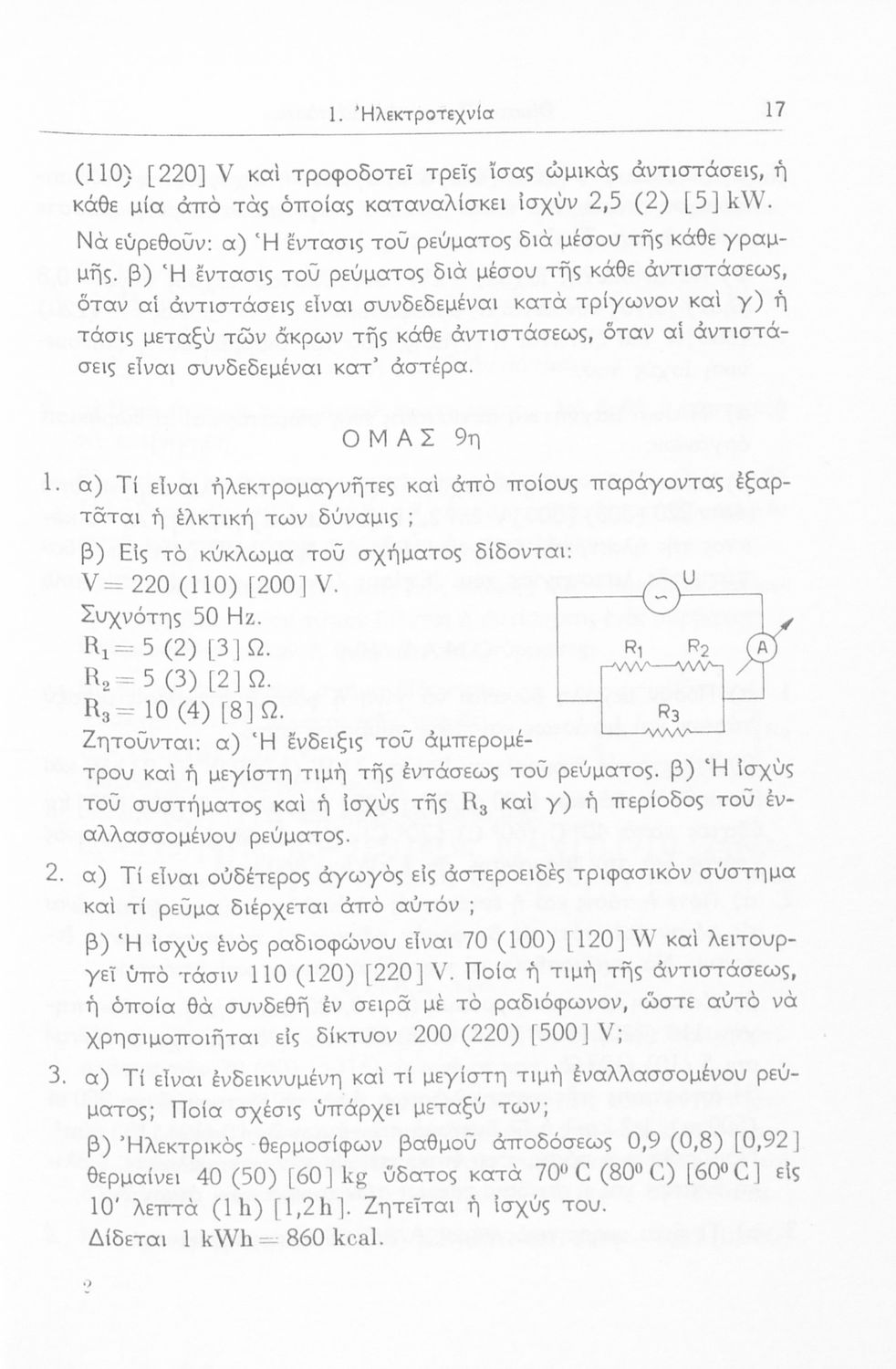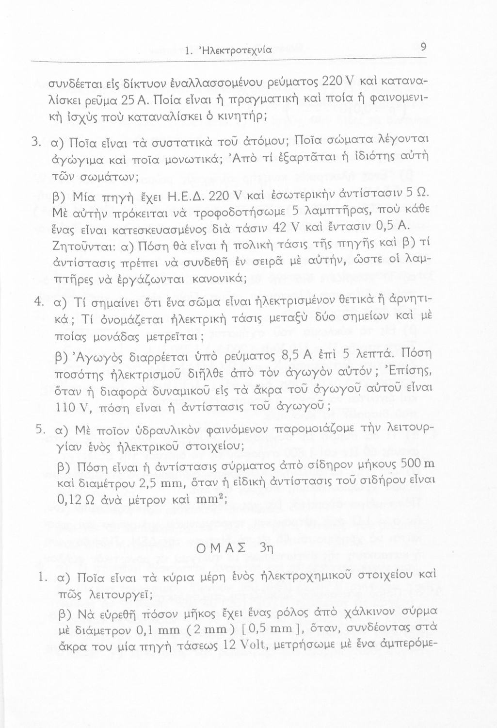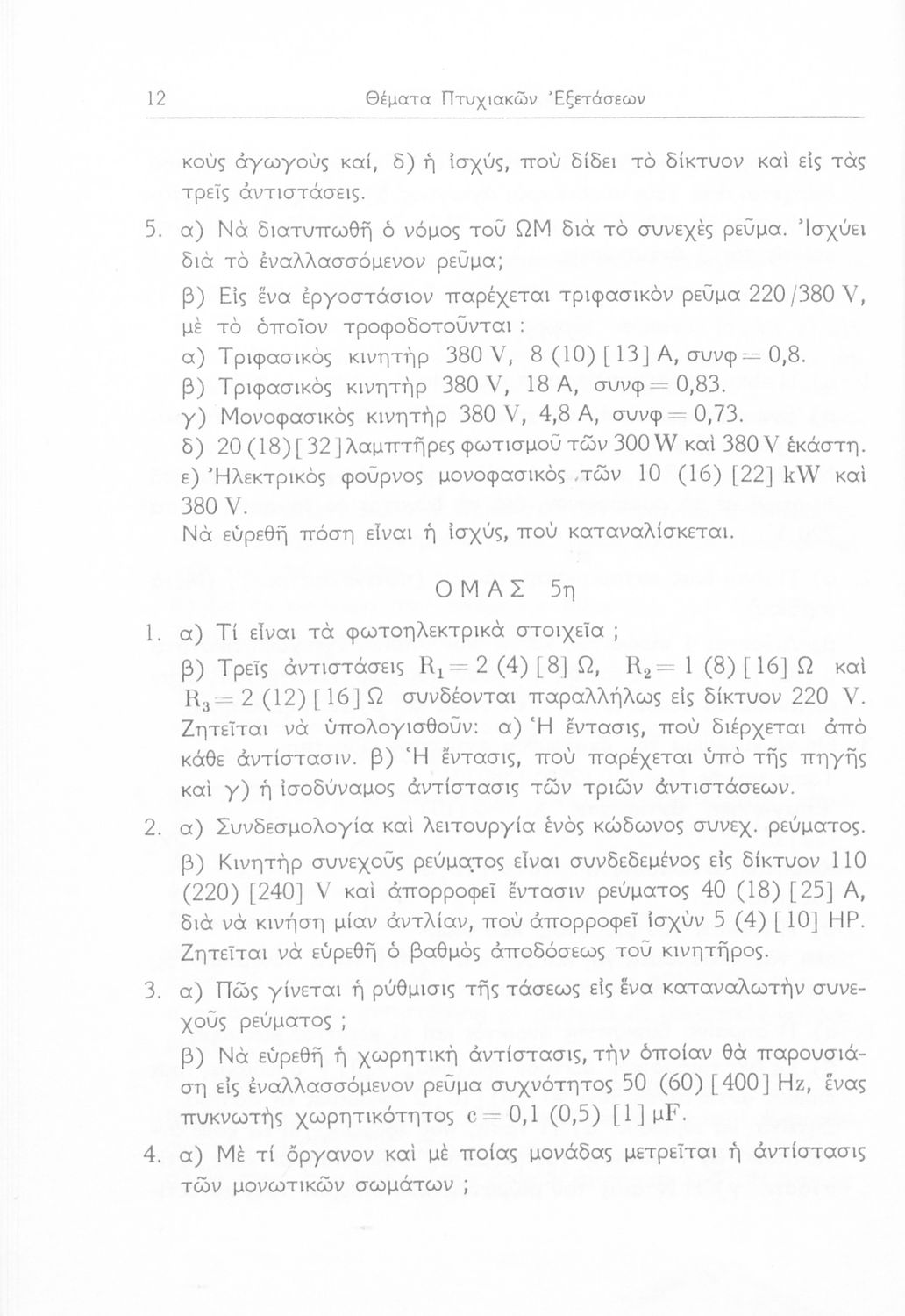 Σχολικό εγχειρίδιο Μηχανικής και Ηλεκτροτεχνίας που περιέχει τα θέματα εξετάσεων για τις τεχνικές σχολές των βοηθών εργοδηγών ηλεκτρικών εγκαταστάσεων.