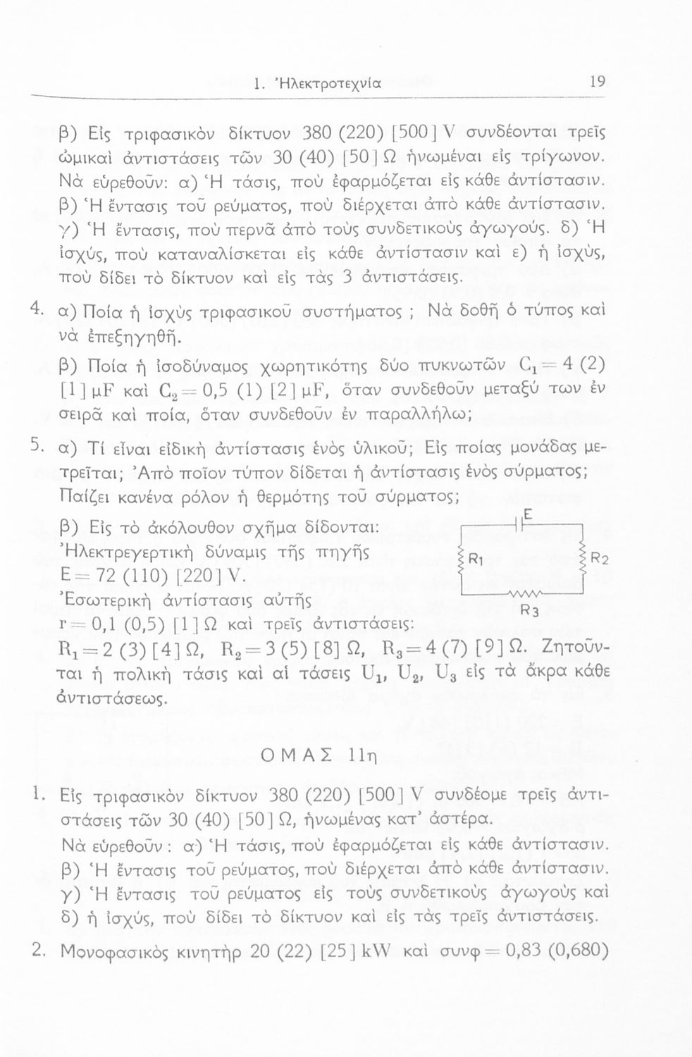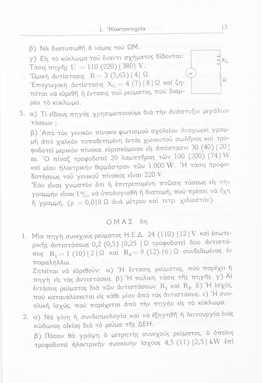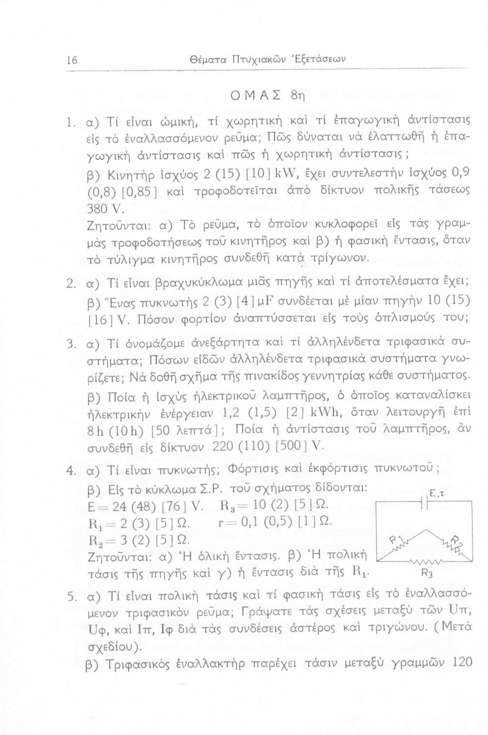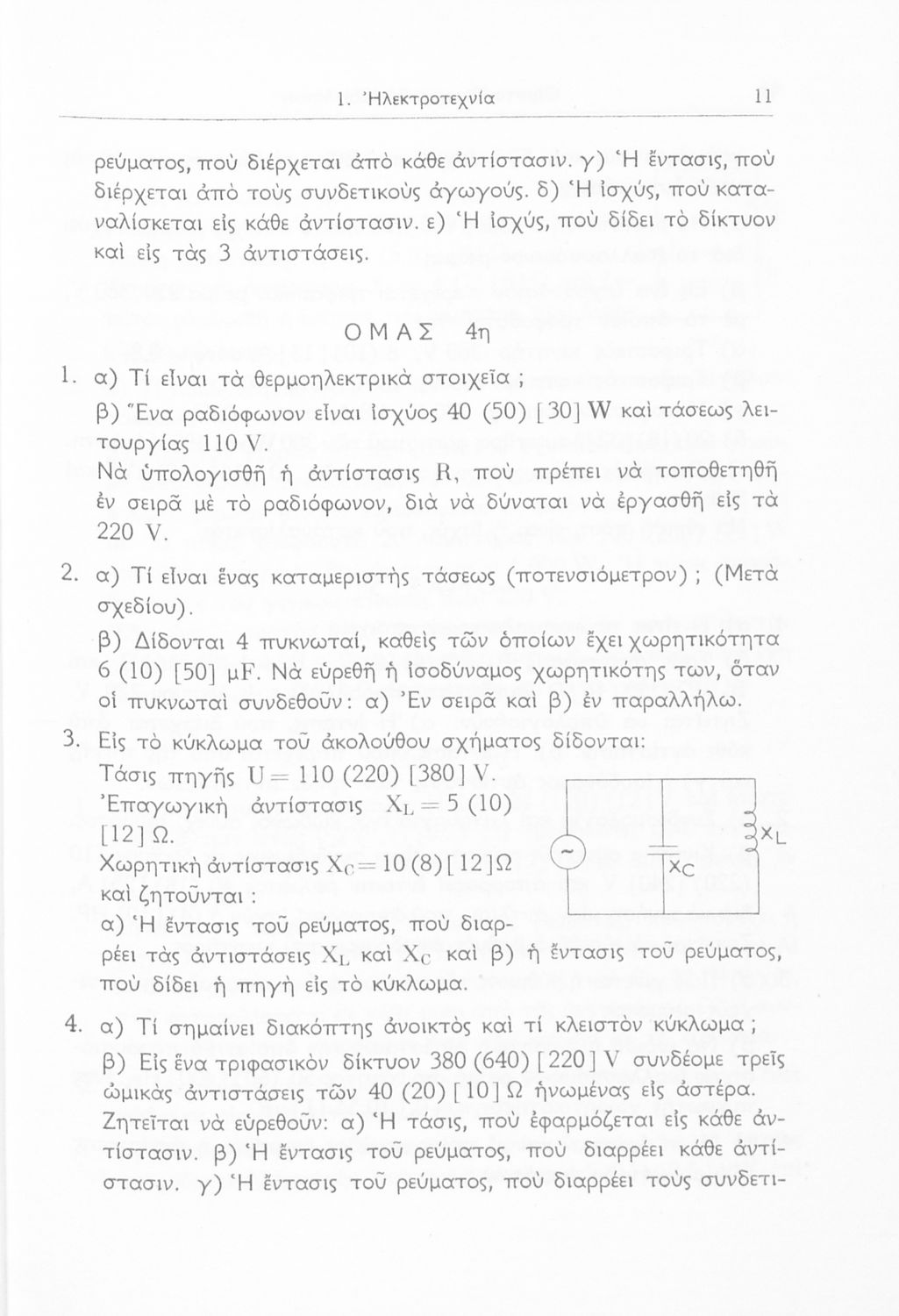 Σχολικό εγχειρίδιο Μηχανικής και Ηλεκτροτεχνίας που περιέχει τα θέματα εξετάσεων για τις τεχνικές σχολές των βοηθών εργοδηγών ηλεκτρικών εγκαταστάσεων.