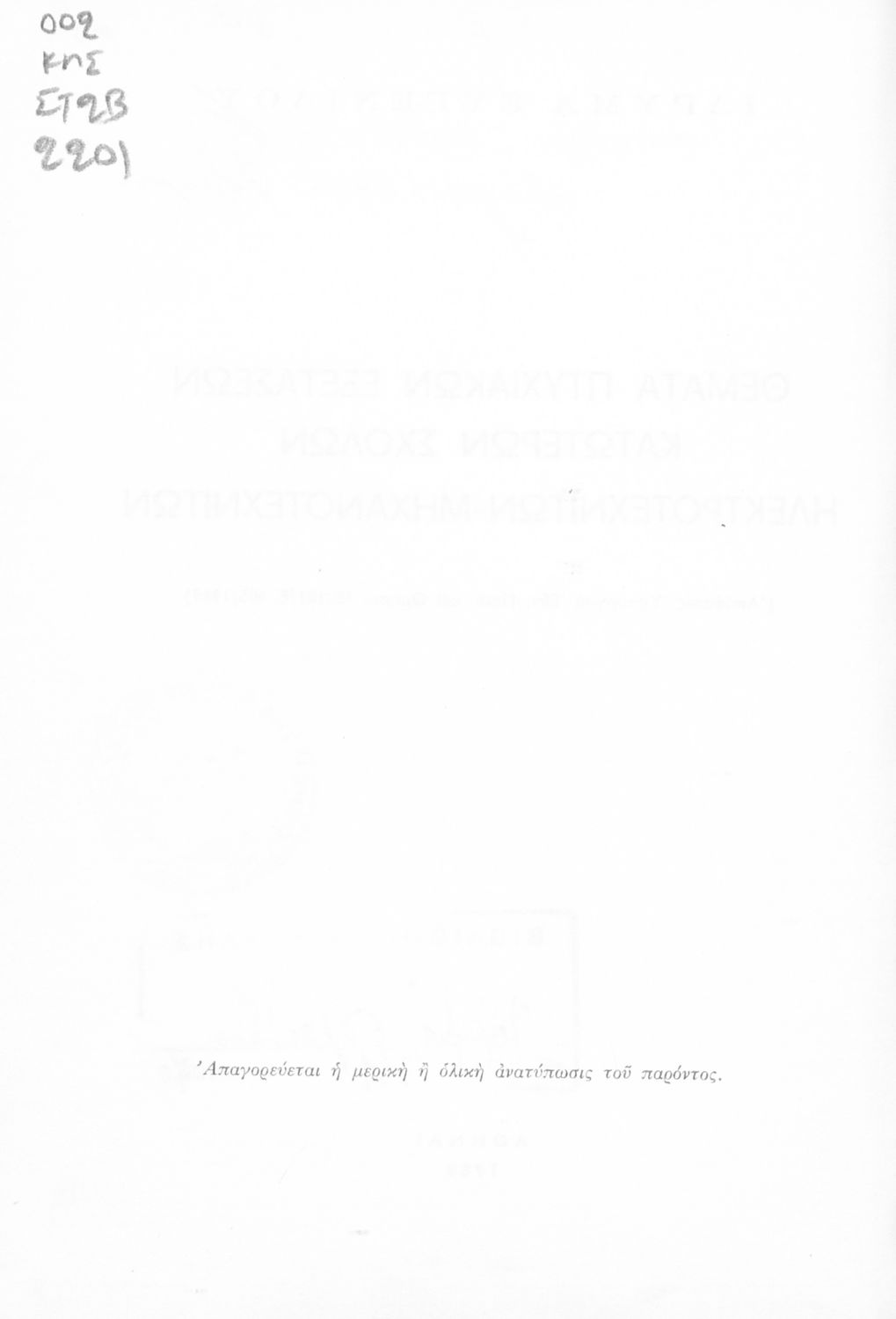 Σχολικό εγχειρίδιο Μηχανικής και Ηλεκτροτεχνίας που περιέχει τα θέματα εξετάσεων για τις τεχνικές σχολές των Ηλεκτροτεχνιτών και των Μηχανοτεχνιτών.