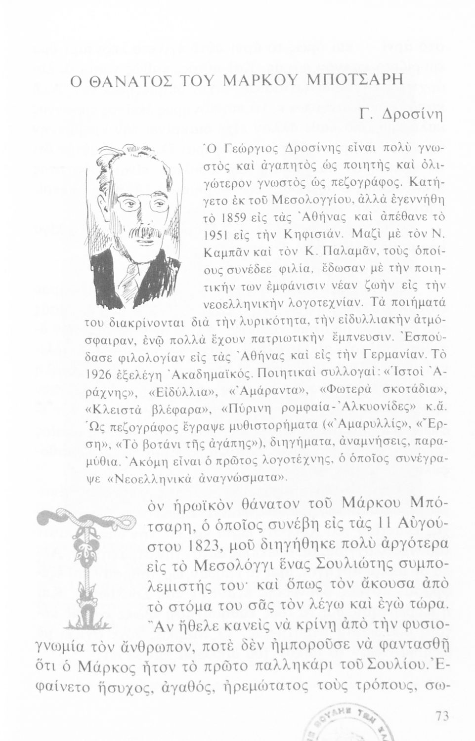 Σχετιζόμενοι όροι:  Παλαμάς, Σεφέρης, Καβάφης, Σικελιανός