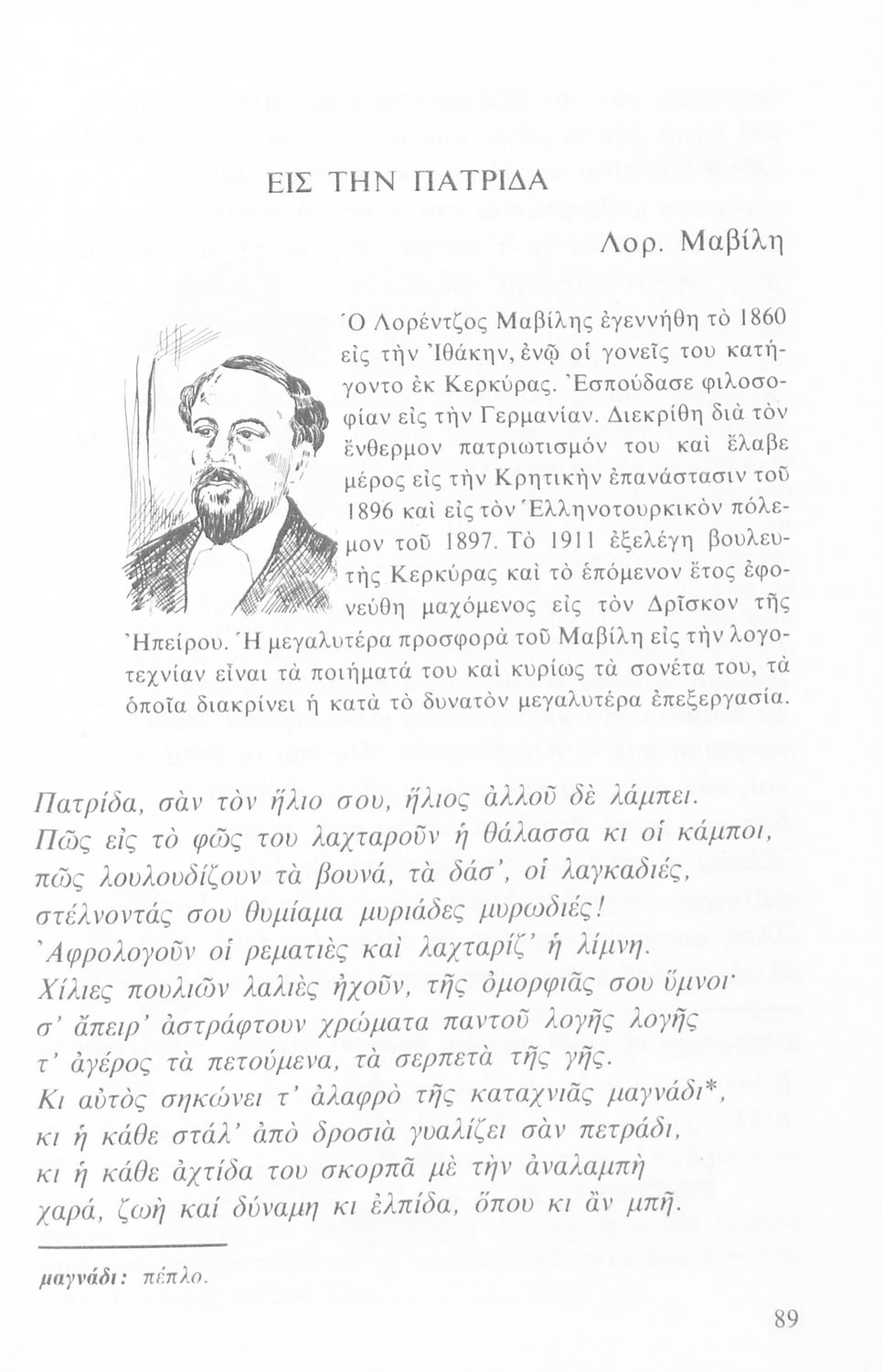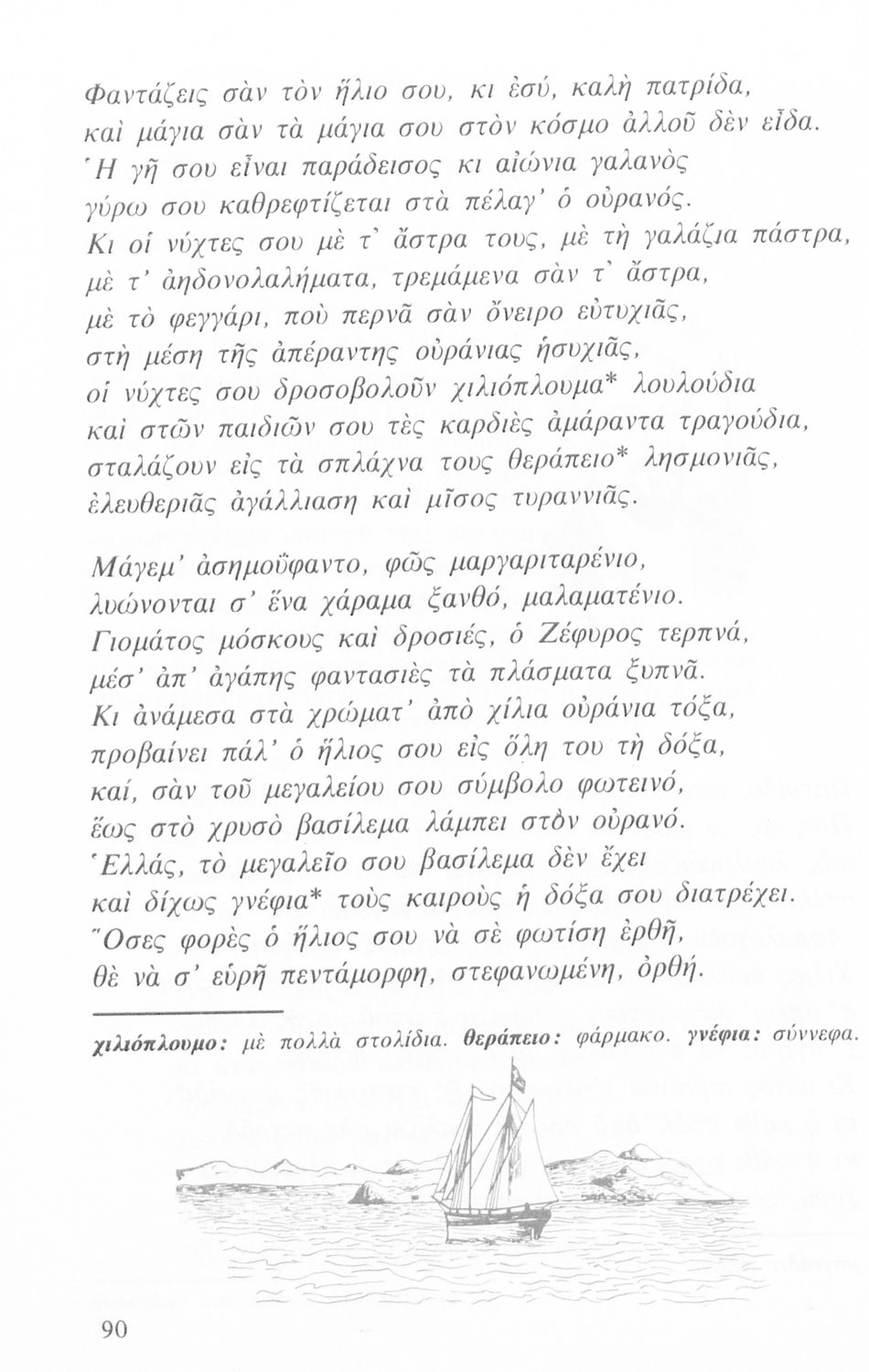 Σχολικό εγχειρίδιο Νέων Ελληνικών Β΄ Εξαταξίου Γυμνασίου που περιλαμβάνει που περιλαμβάνει ποιήματα και πεζά Ελλήνων συγγραφέων εμπνευσμένα από την αρχαία και σύγχρονη ελληνική ιστορία, την ελληνική φύση και ...