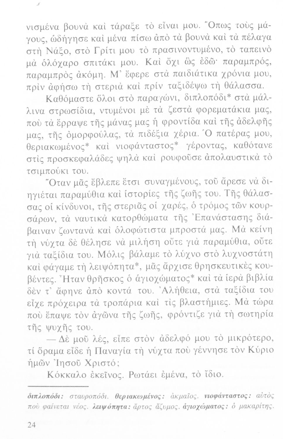 Σχολικό εγχειρίδιο Νέων Ελληνικών ΣΤ΄ Γυμνασίου και Λυκείου που περιλαμβάνει κείμενα Ελλήνων και ξένων συγγραφέων με θέματα από την σύγχρονη ελληνική ιστορία και την οικογενειακή και θρησκευτική ζωή, και ...