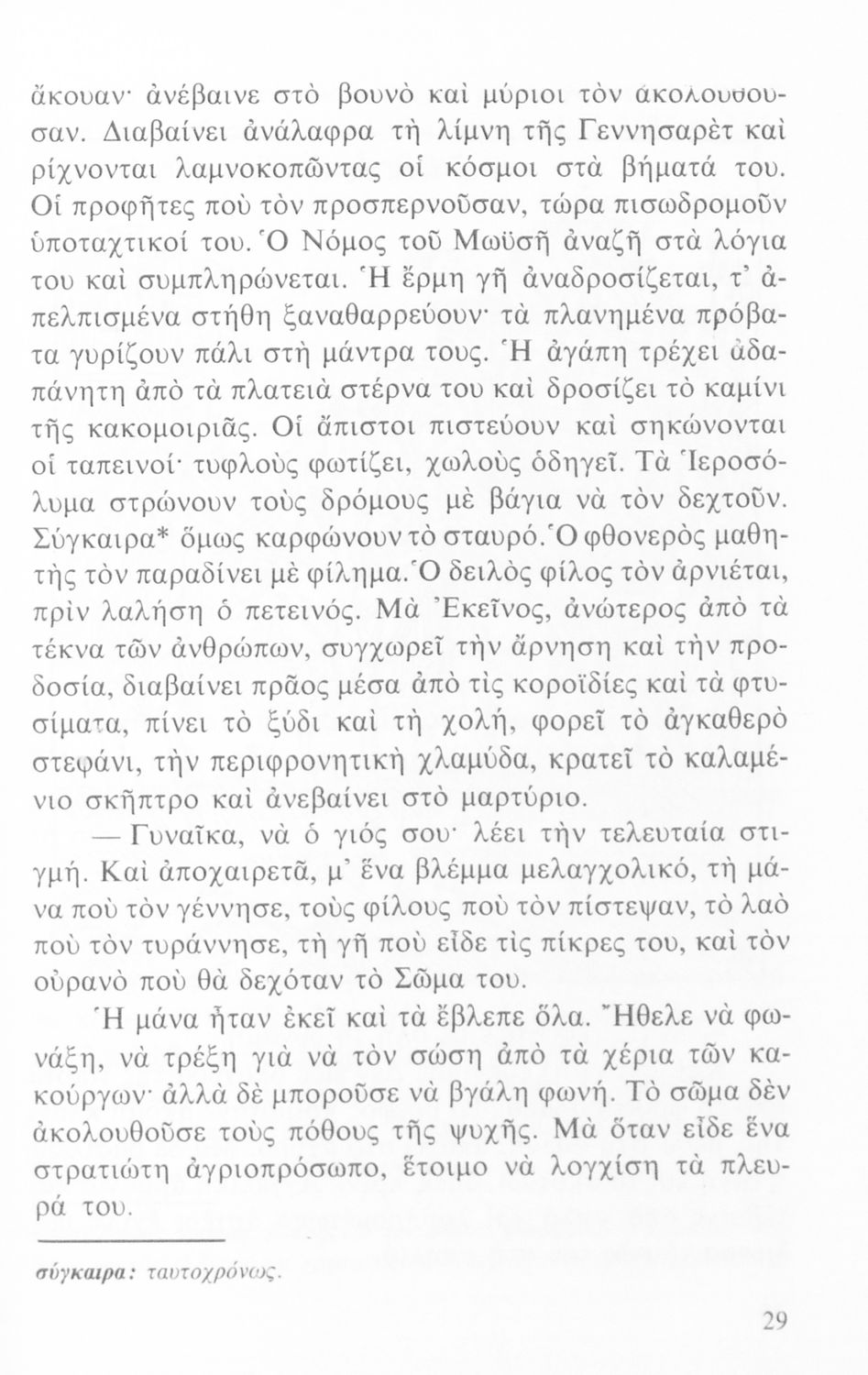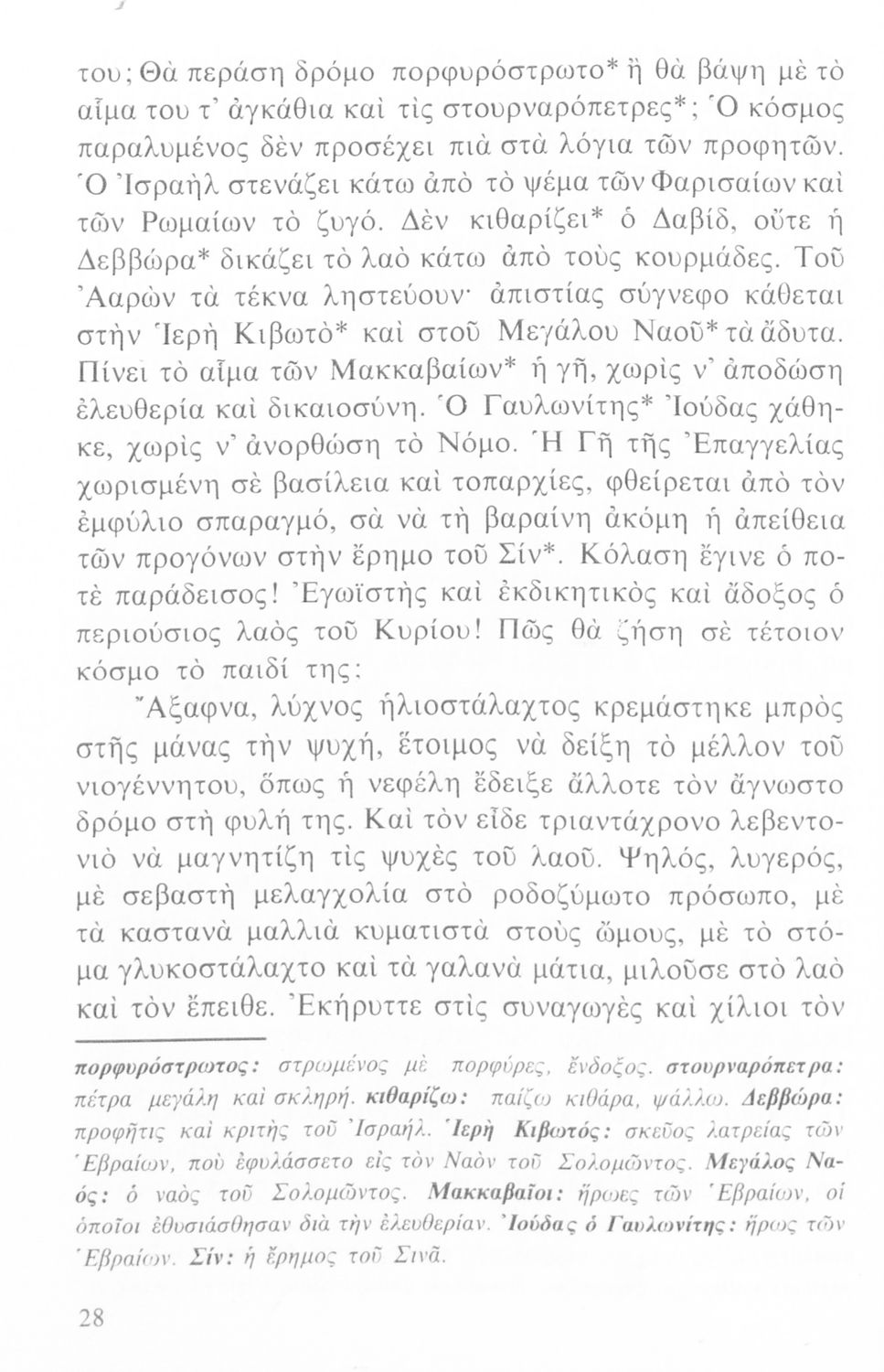 Σχολικό εγχειρίδιο Νέων Ελληνικών Δ΄ Γυμνασίου και Β΄ Αστικού Σχολείου που περιέχει πεζά και ποιήματα Ελλήνων συγγραφέων εμπνευσμένα από τη θρησκευτική και κοινωνική ζωή, την ελληνική μυθολογία, την αρχαία και