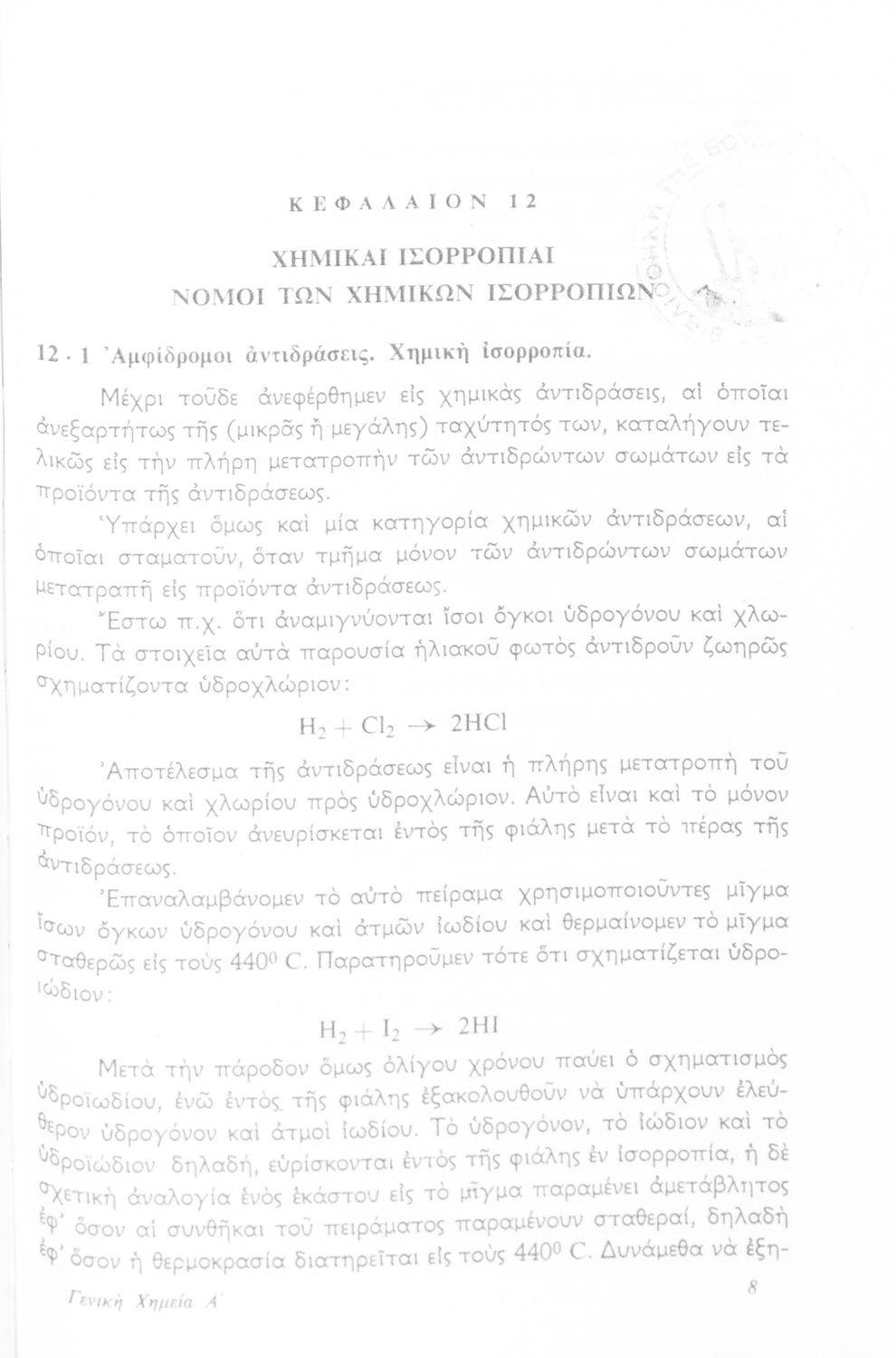 Σχολικό εγχειρίδιο Χημείας Α΄ και Β΄ Λυκείου που περιλαμβάνει εισαγωγή στις έννοιες της Χημείας (ύλη, νόμοι χημείας, χημικές αντιδράσεις, εξισώσεις, ενώσεις), αναλυτική περιγραφή στοιχείων και των ενώσεών τους.