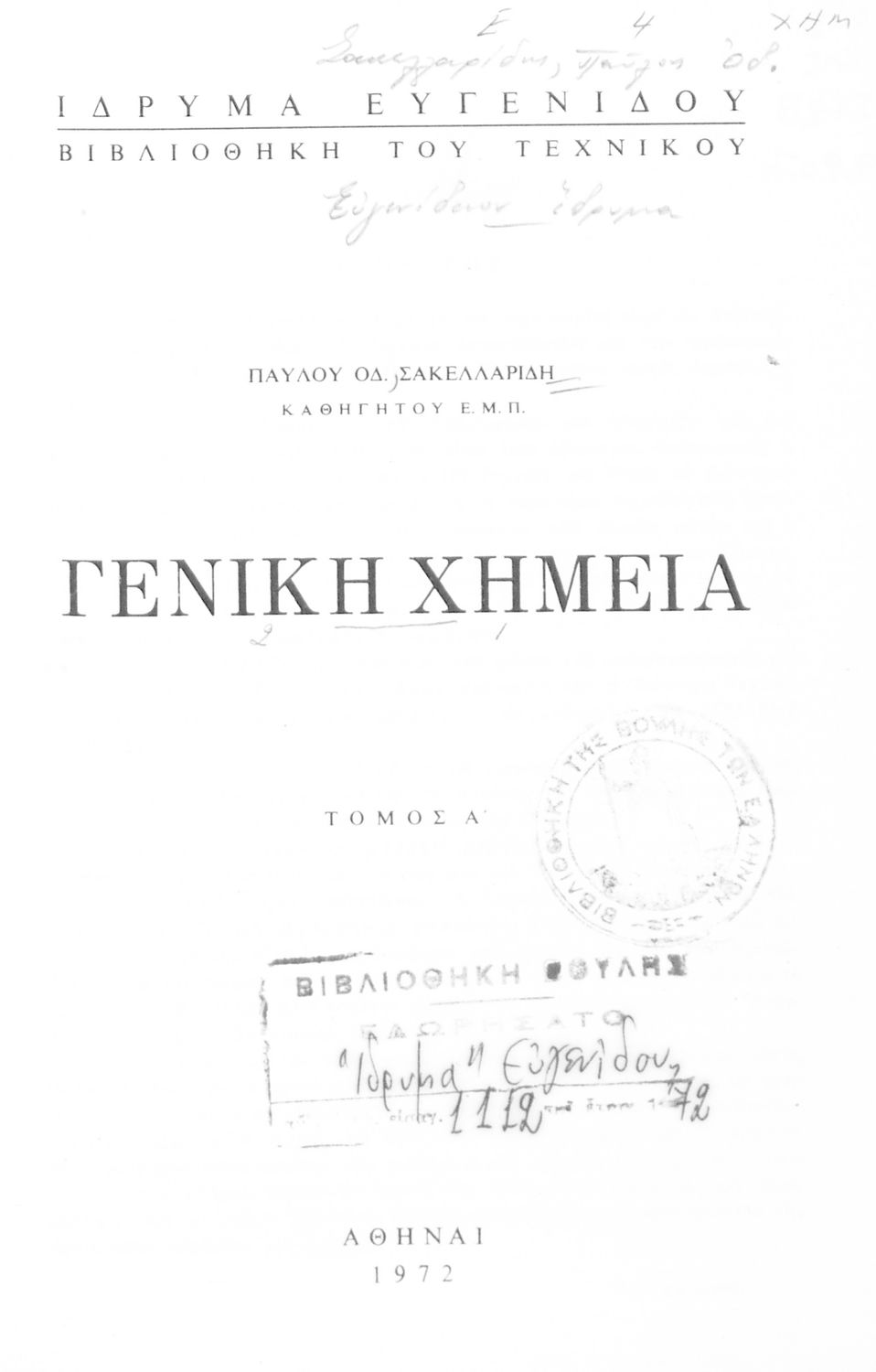 Κωδικός αναγνώρισης: 03-20560396 Τίτλος: Γενική Χημεία τόμος Α΄ Συγγραφέας: Παύλος Οδ. Σακελλαρίδης Μέγεθος και υπόστρωμα: Σχολικό εγχειρίδιο, μαλακό εξώφυλλο, 176 σελίδες. |