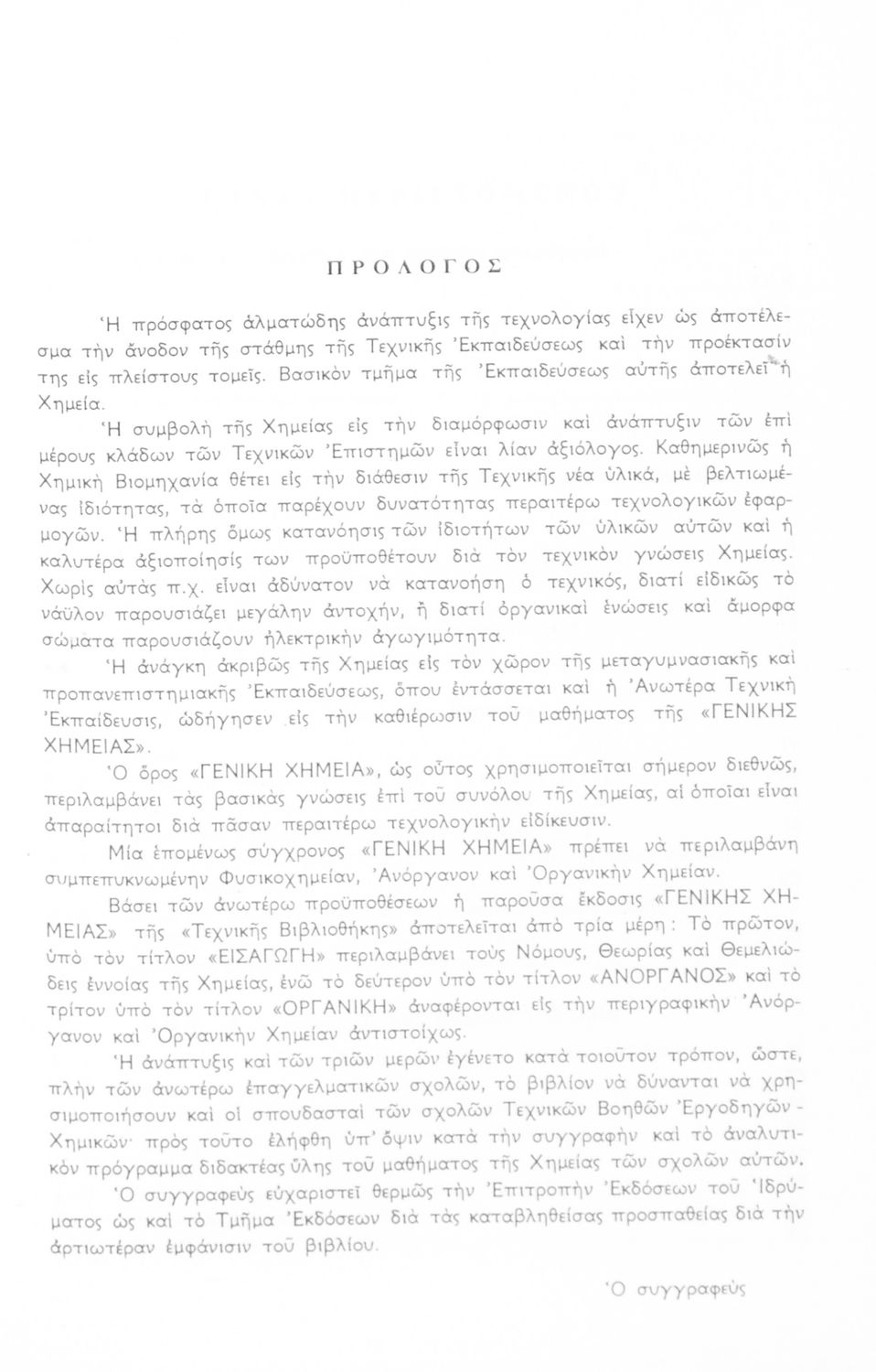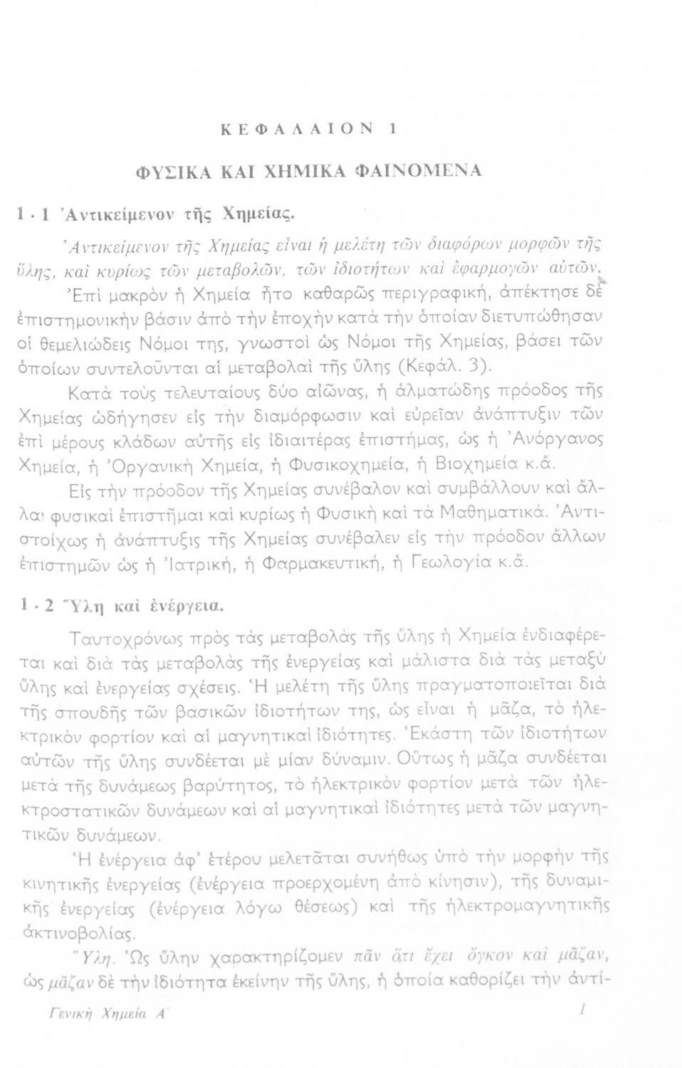 Σχολικό εγχειρίδιο Χημείας για την Τεχνική Εκπαίδευση που αποτελεί μια γενική επισκόπηση της Χημείας, εστιάζει στις έννοιες της ύλης και της ενέργειας, και των χημικών στοιχείων και ενώσεων και εξετάζει τους νόμους της ατομικής και μοριακής θεωρίας.