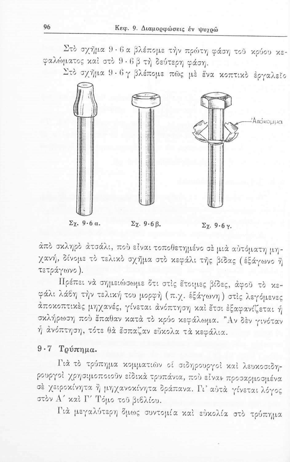 Σχολικό εγχειρίδιο Μηχανουργικής και Τεχνολογίας για τους μαθητές του Γυμνασίου. Εισάγει τους μαθητές στις βασικές αρχές μηχανικής. Είναι χωρισμένο σε 15 κεφάλαια. Αρχίζει με τα βασικά εργαλεία και τον τρόπο χρήσης τους και συνεχίζει παρουσιάζοντας βασικά υλικά όπως ο σίδηρος και το ξύλο και δείχνει τον τρόπο με τον οποίο χρησιμοποιούνται στα διάφορα εργαστήρια. Το βιβλίο απευθύνεται σε μαθητές τεχνικών σχολών ή για αυτούς οι οποίοι προορίζονται για τεχνικές σχολές.