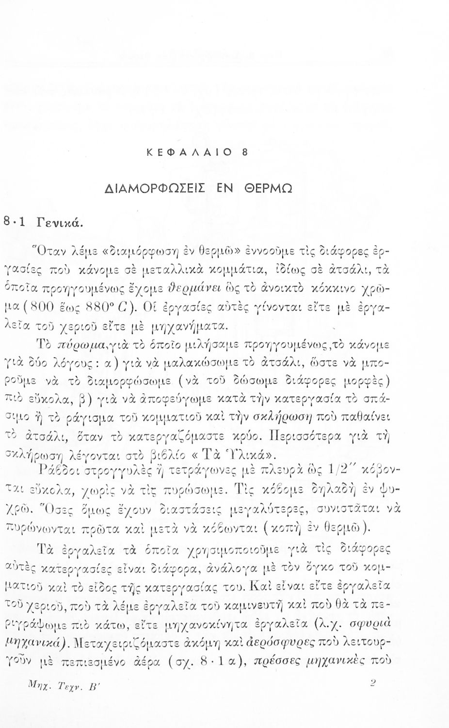 Σχολικό εγχειρίδιο Μηχανουργικής και Τεχνολογίας για τους μαθητές του Γυμνασίου. Εισάγει τους μαθητές στις βασικές αρχές μηχανικής. Είναι χωρισμένο σε 15 κεφάλαια. Αρχίζει με τα βασικά εργαλεία και τον τρόπο χρήσης τους και συνεχίζει παρουσιάζοντας βασικά υλικά όπως ο σίδηρος και το ξύλο και δείχνει τον τρόπο με τον οποίο χρησιμοποιούνται στα διάφορα εργαστήρια. Το βιβλίο απευθύνεται σε μαθητές τεχνικών σχολών ή για αυτούς οι οποίοι προορίζονται για τεχνικές σχολές.