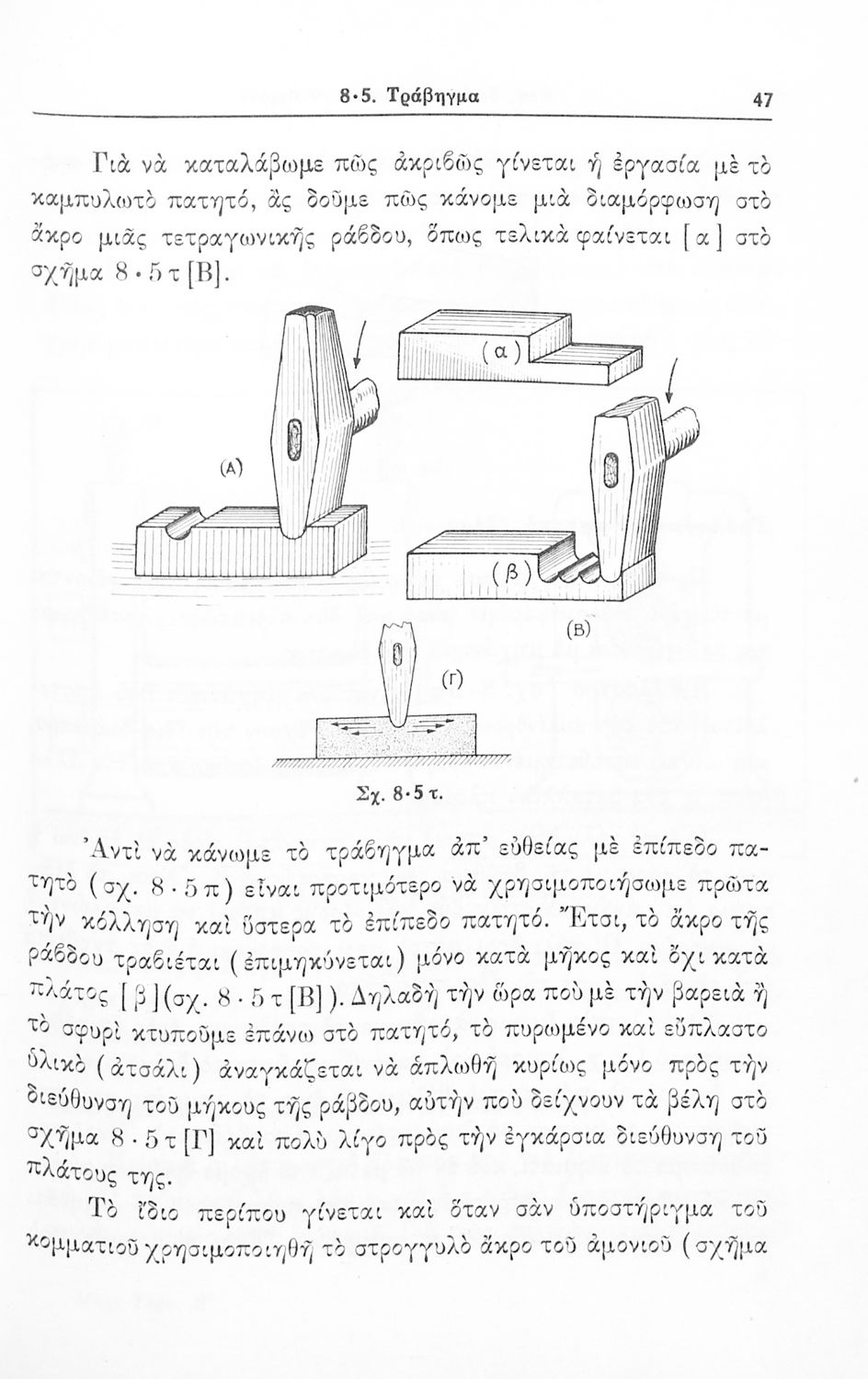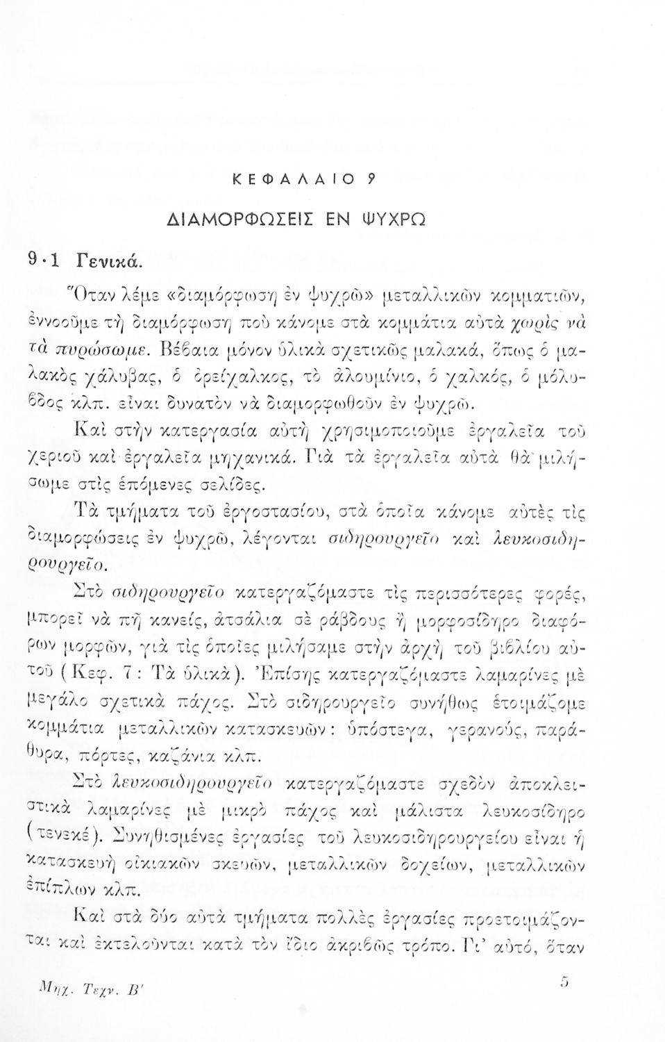 Σχολικό εγχειρίδιο Μηχανουργικής και Τεχνολογίας για τους μαθητές του Γυμνασίου. Εισάγει τους μαθητές στις βασικές αρχές μηχανικής. Είναι χωρισμένο σε 15 κεφάλαια. Αρχίζει με τα βασικά εργαλεία και τον τρόπο χρήσης τους και συνεχίζει παρουσιάζοντας βασικά υλικά όπως ο σίδηρος και το ξύλο και δείχνει τον τρόπο με τον οποίο χρησιμοποιούνται στα διάφορα εργαστήρια. Το βιβλίο απευθύνεται σε μαθητές τεχνικών σχολών ή για αυτούς οι οποίοι προορίζονται για τεχνικές σχολές.