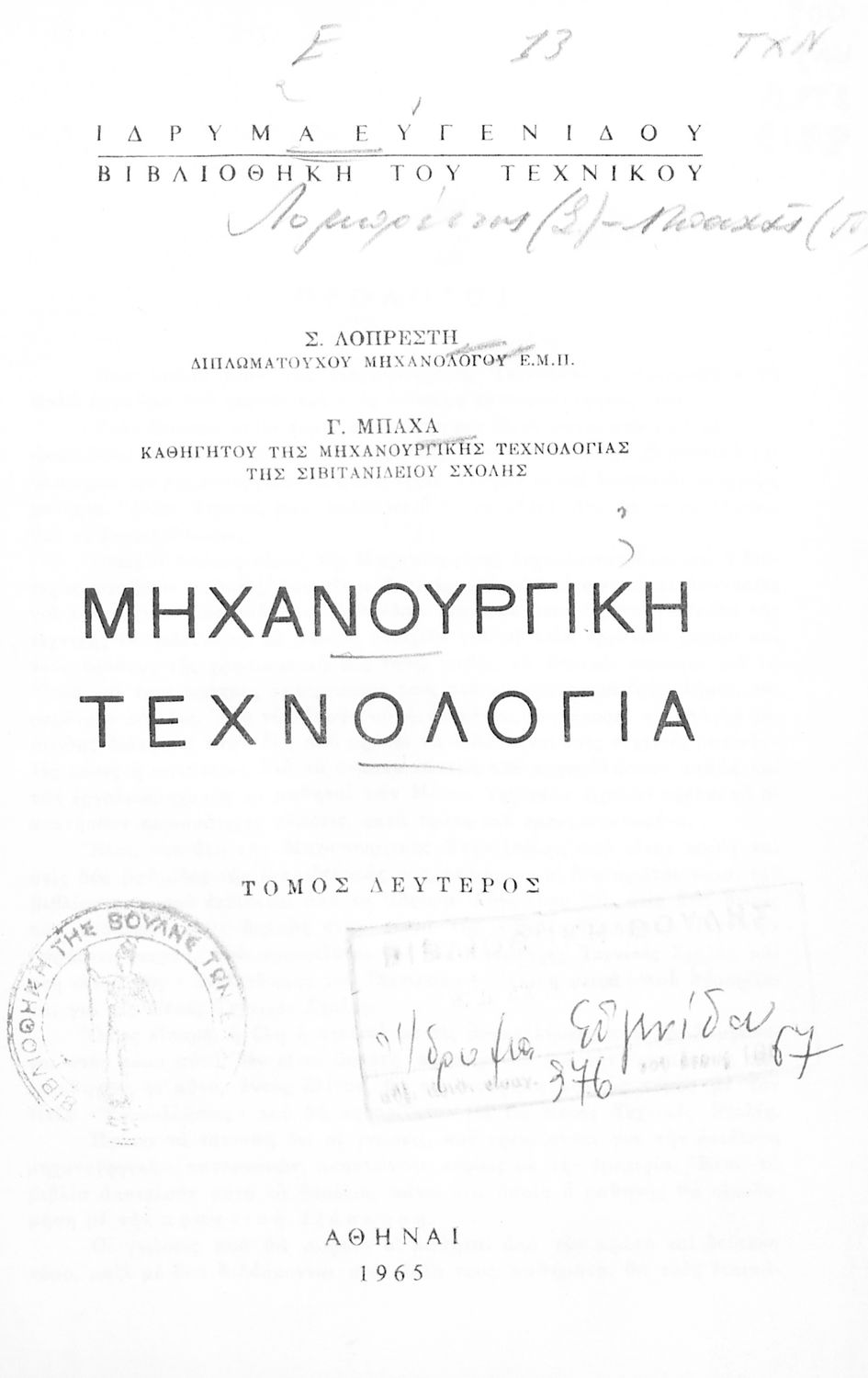 Συγγραφέας: Σ. Λομπρέστης, Γ. Μπάχας