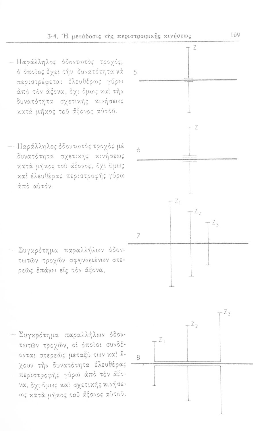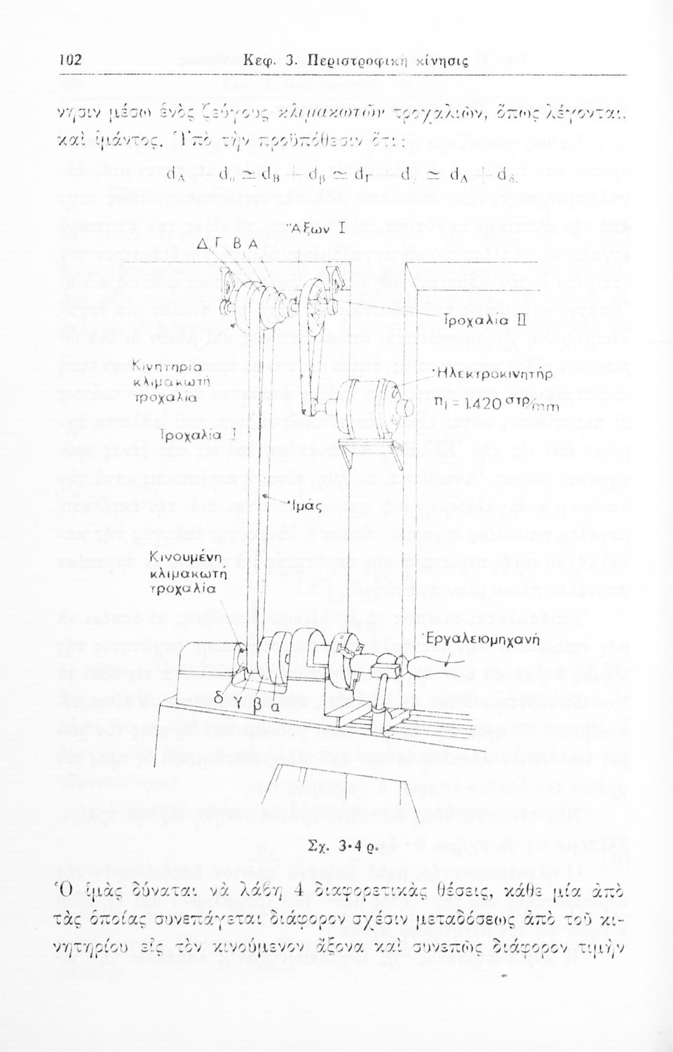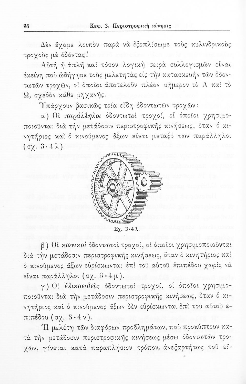 Σχολικό εγχειρίδιο Μηχανικής για τους μαθητές Γυμνασίου. Παρουσιάζει διάφορα είδη κινήσεων και δείχνει ζητήματα υπολογισμού όπως για παράδειγμα, ομοιόμορφες κινήσεις, επιταχυνόμενη-επιβραδυνόμενη κίνηση καθώς και σύνθετες κινήσεις οι οποίες συνδυάζουν τα παραπάνω χαρακτηριστικά. Επιπλέον, εξετάζει και κινήσεις διαφορετικών μηχανών όπως είναι οι κινήσεις τροχαλίας και ιμάντων, αλλά και κινήσεις ανθρώπων και αυτοκινήτων. Μελετά ζητήματα επιτάχυνσης και μεταβολής της κίνησης.